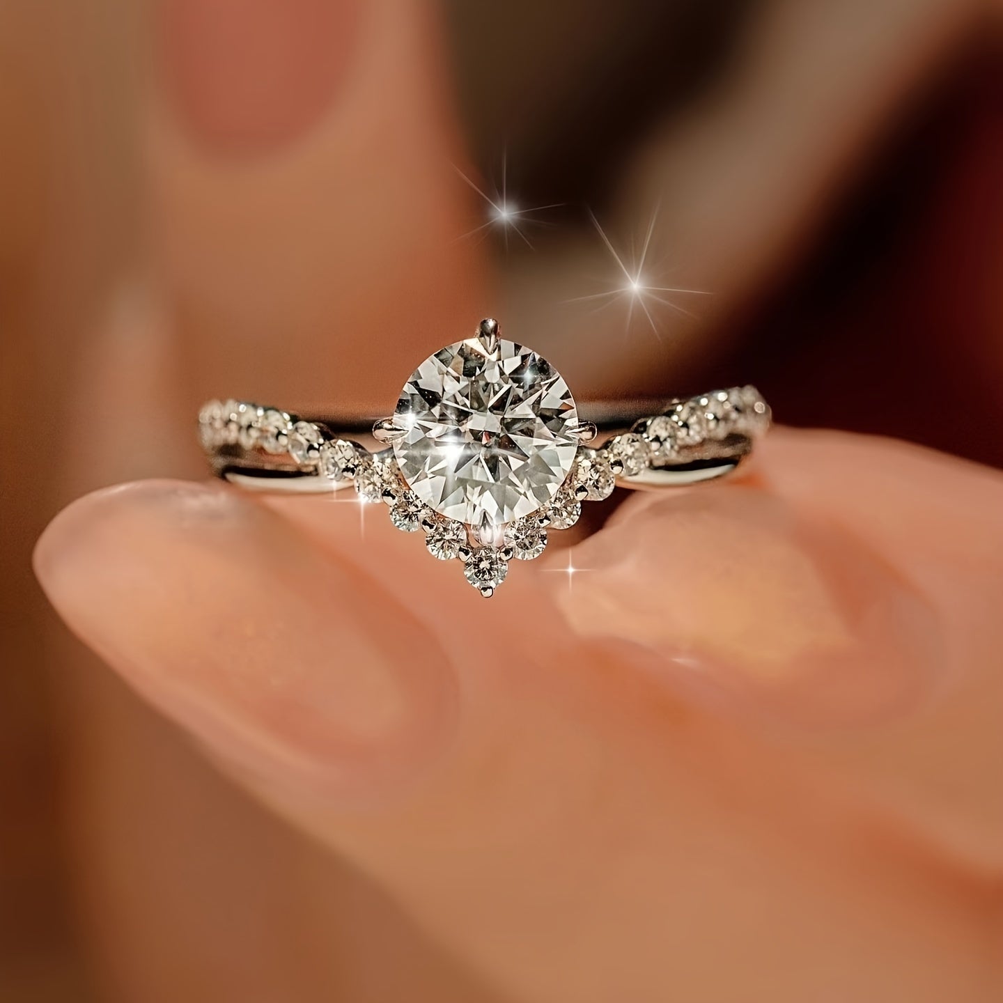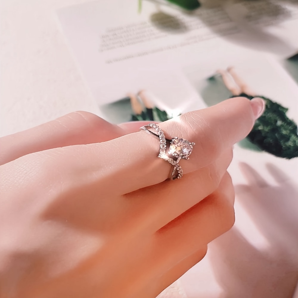 1 Carat Classic Princess Cut Genuine Cubic Synthetic Zirconia Adjustable Open Wedding Engagement Ring for Women, Shiny Synthetic Zirconia Bridal Wedding Ring, Exquisite Fashion Jewelry for Ladies