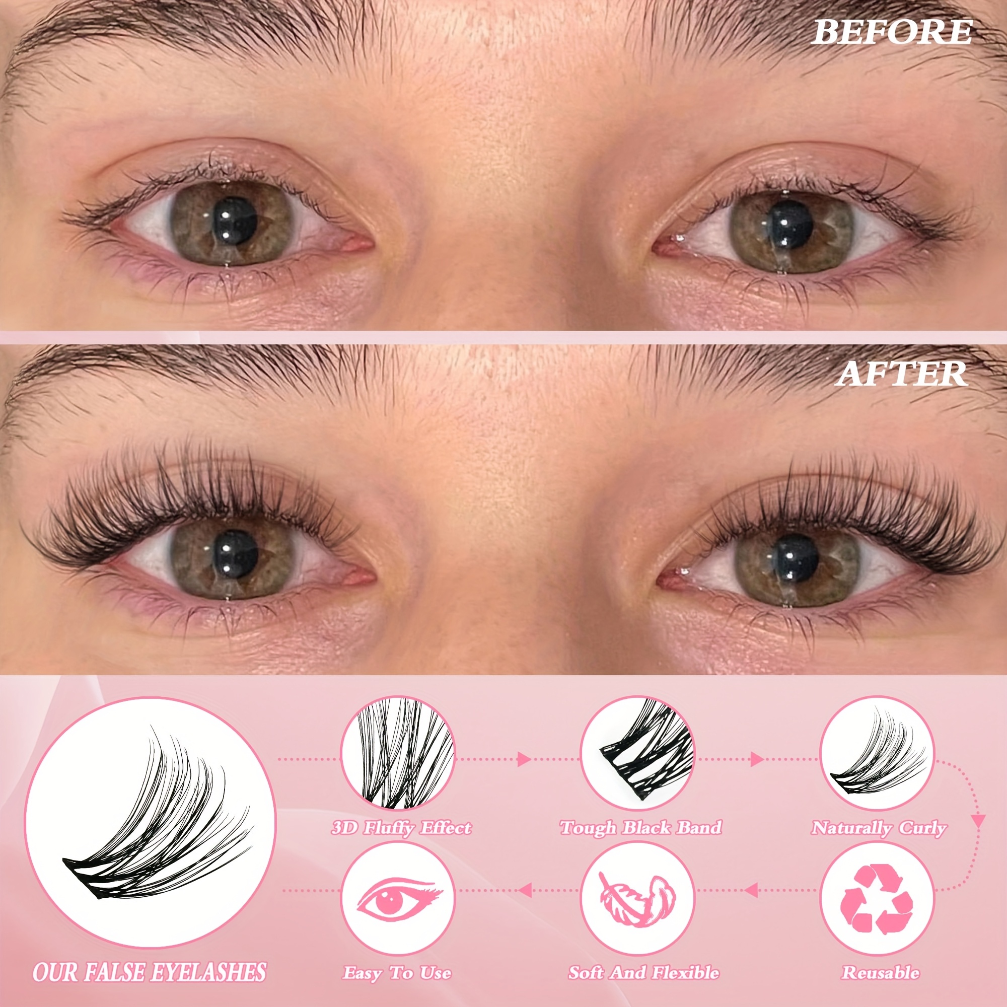 120 Touffes de Cils DIY – 8-16mm, Naturels et Fins, Réutilisables, Idéal Halloween, Noël, Saint-Valentin, Mariages et Plus