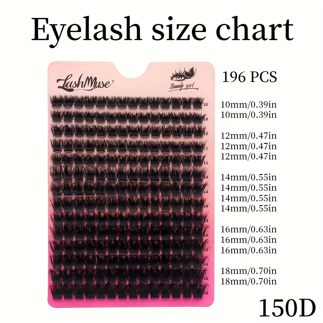 Faux cils 196 bouquets 150D, longueurs mixtes de 10 à 18 mm, à combiner à volonté, courbure D-D, effet œil de chat russe 3D, volume naturel et duveteux - légers, doux, confortables, faciles à poser