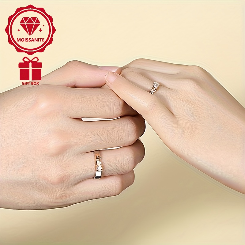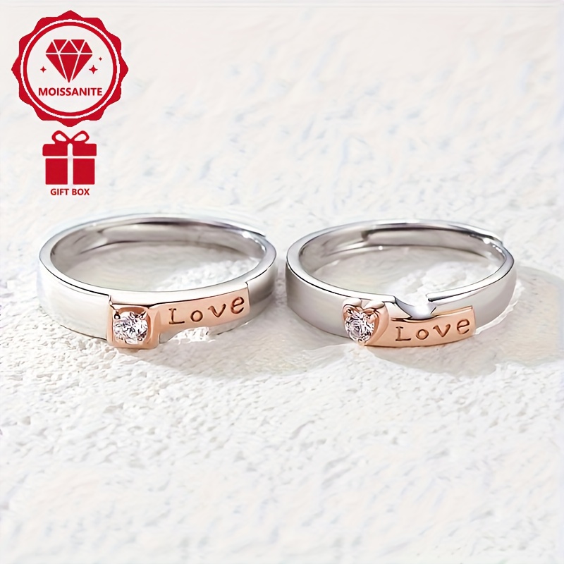 1ct Moissanite S925 Silver Plated Couple Rings, Elegant Bohemian Style, Heart-Shaped LOVE Design, Valentine'S Day Gift, Music Festival Accessory, Spring Season Jewelry, Copper Material, with Gift Box, Couple Ring, Engagement