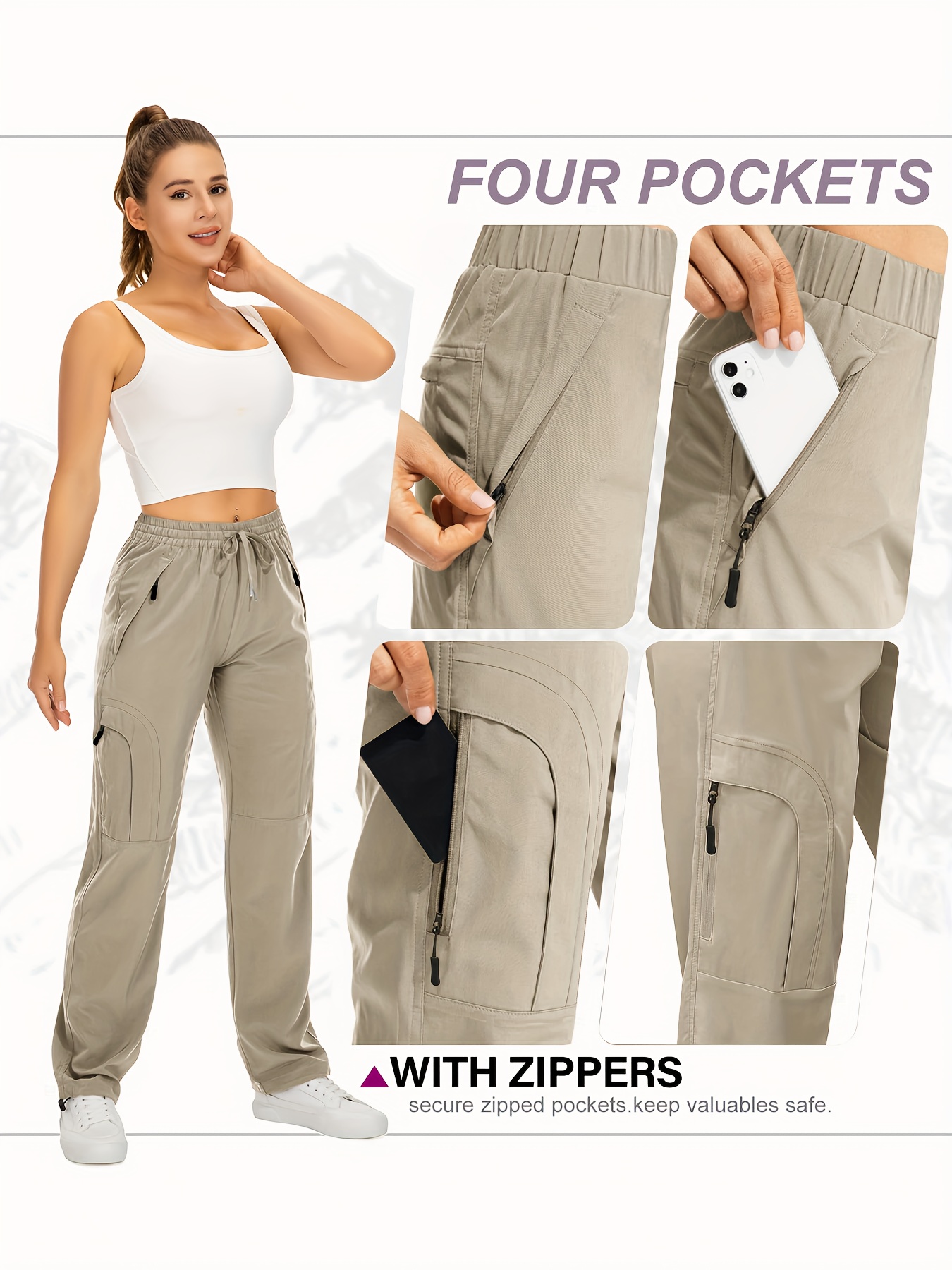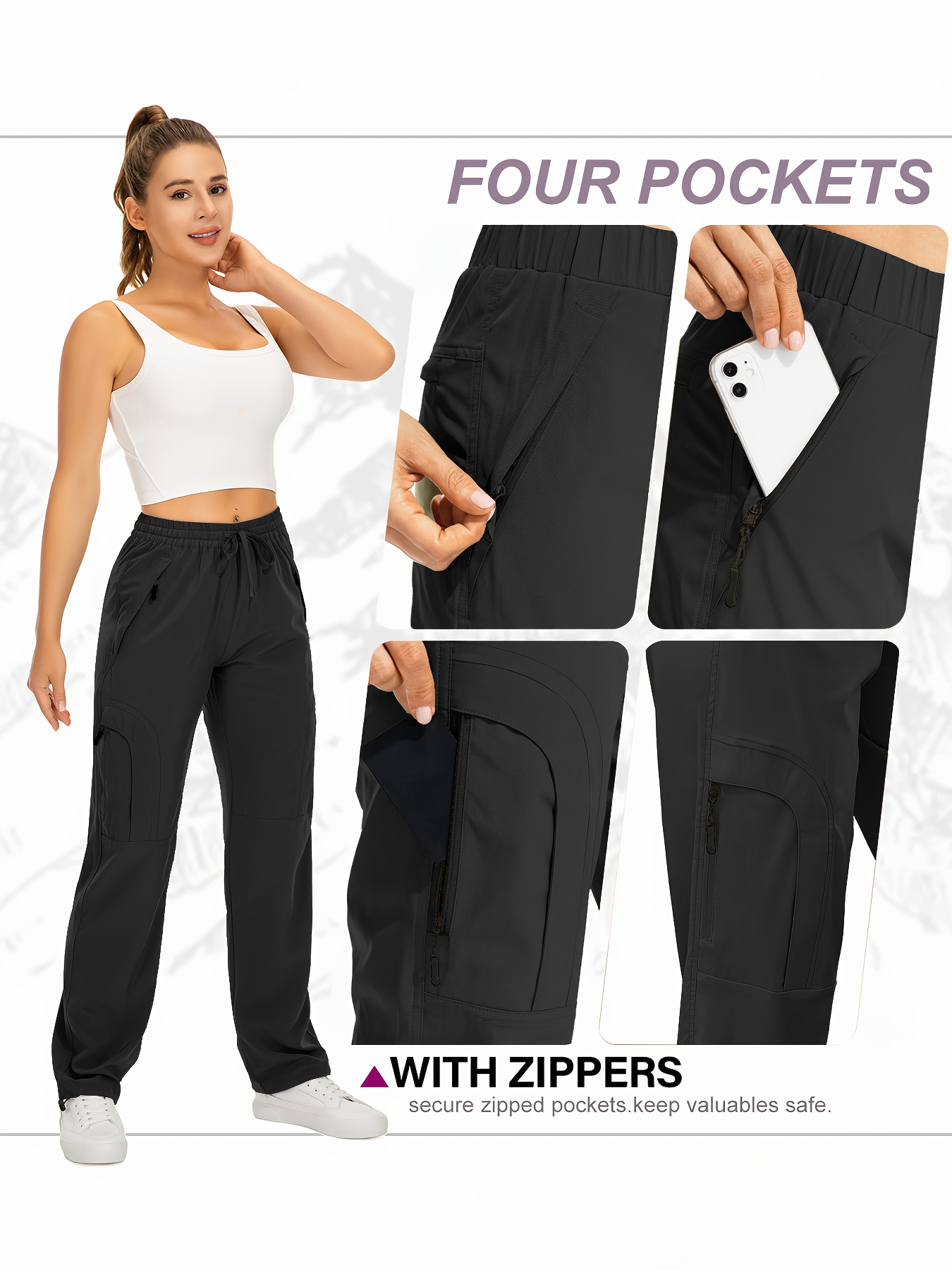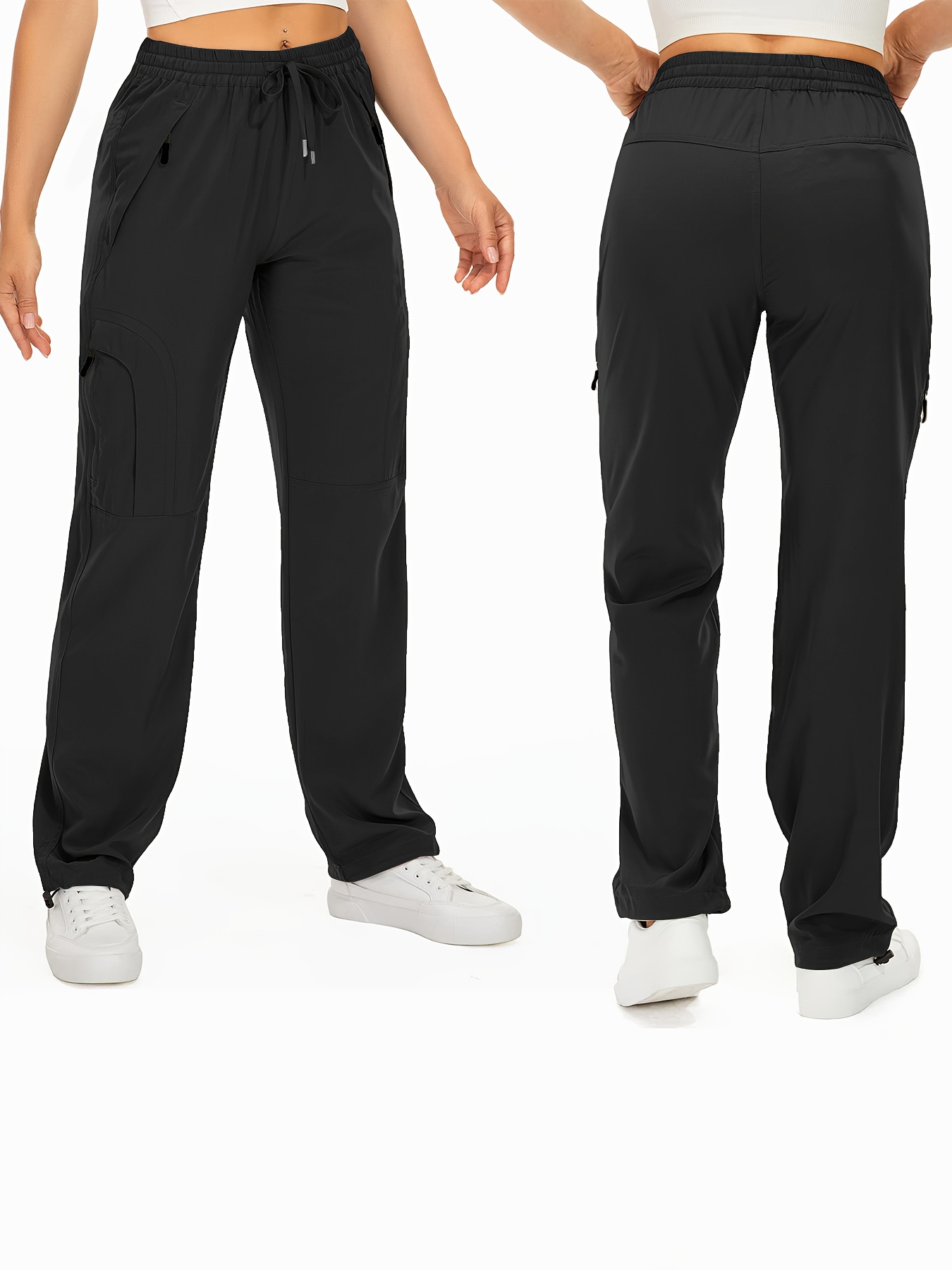 Lot de 2 Pantalons Cargo Femme – Poches Zippées, Tissu Respirant et Séchant Rapidement, Extensible, Automne, Noir et Blanc