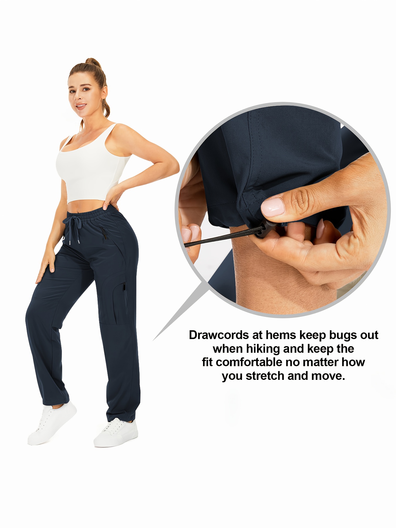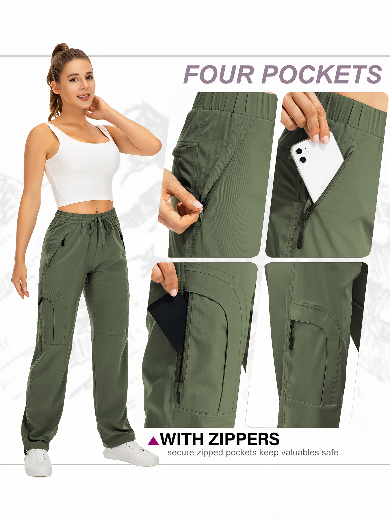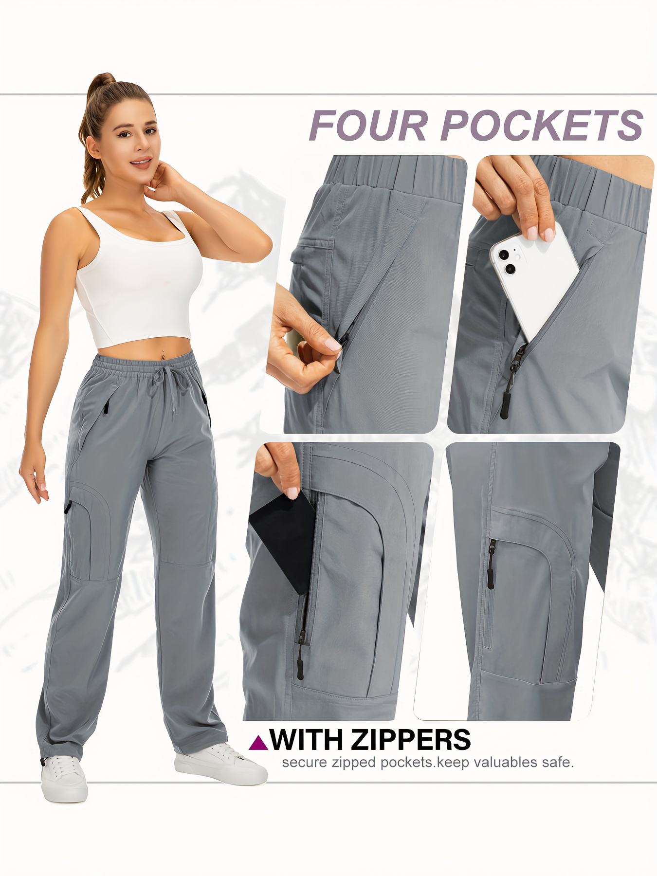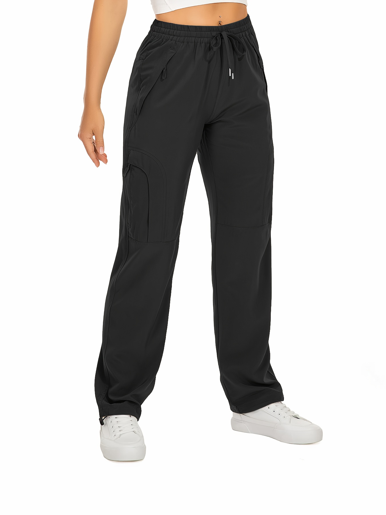 Lot de 2 Pantalons Cargo Femme – Poches Zippées, Tissu Respirant et Séchant Rapidement, Extensible, Automne, Noir et Blanc