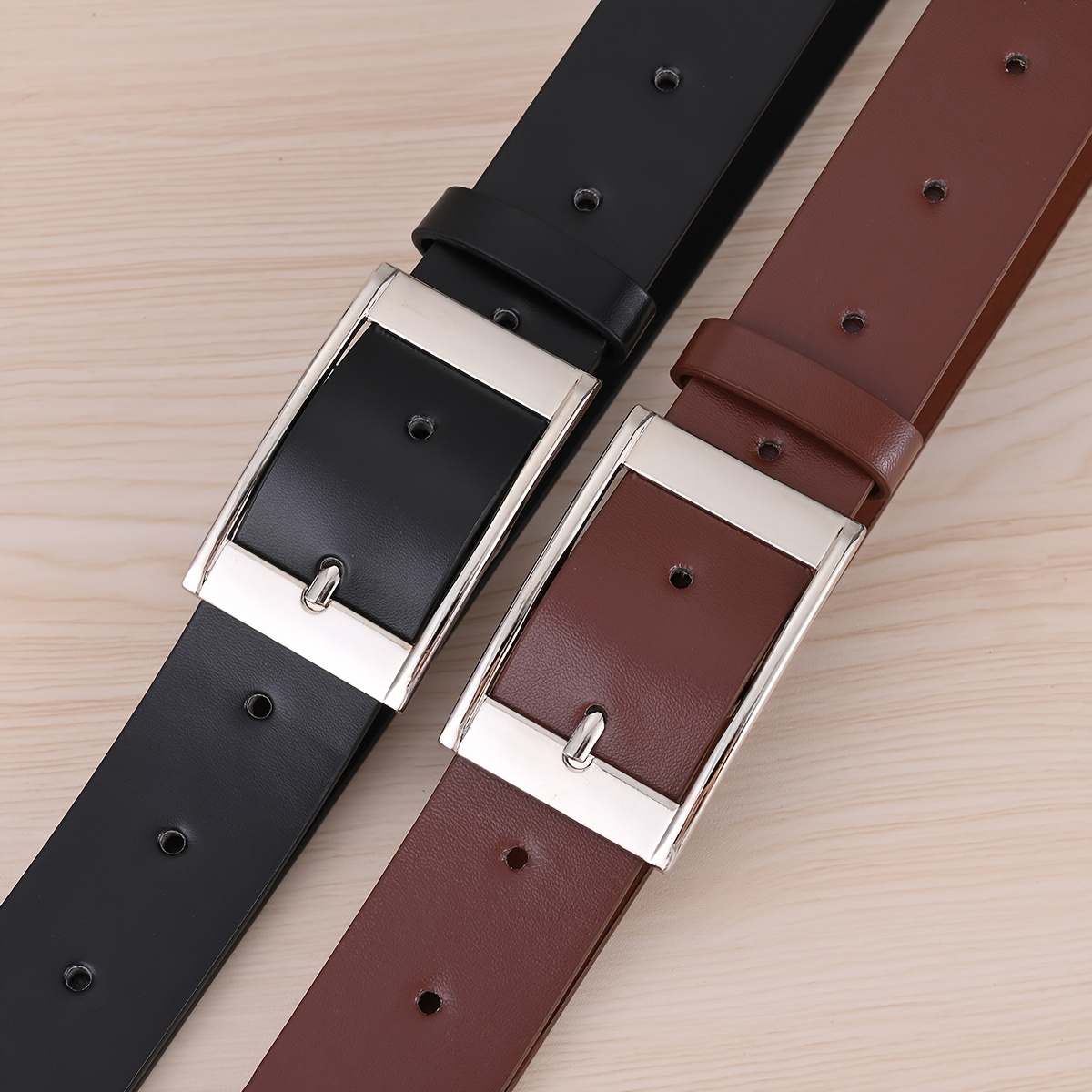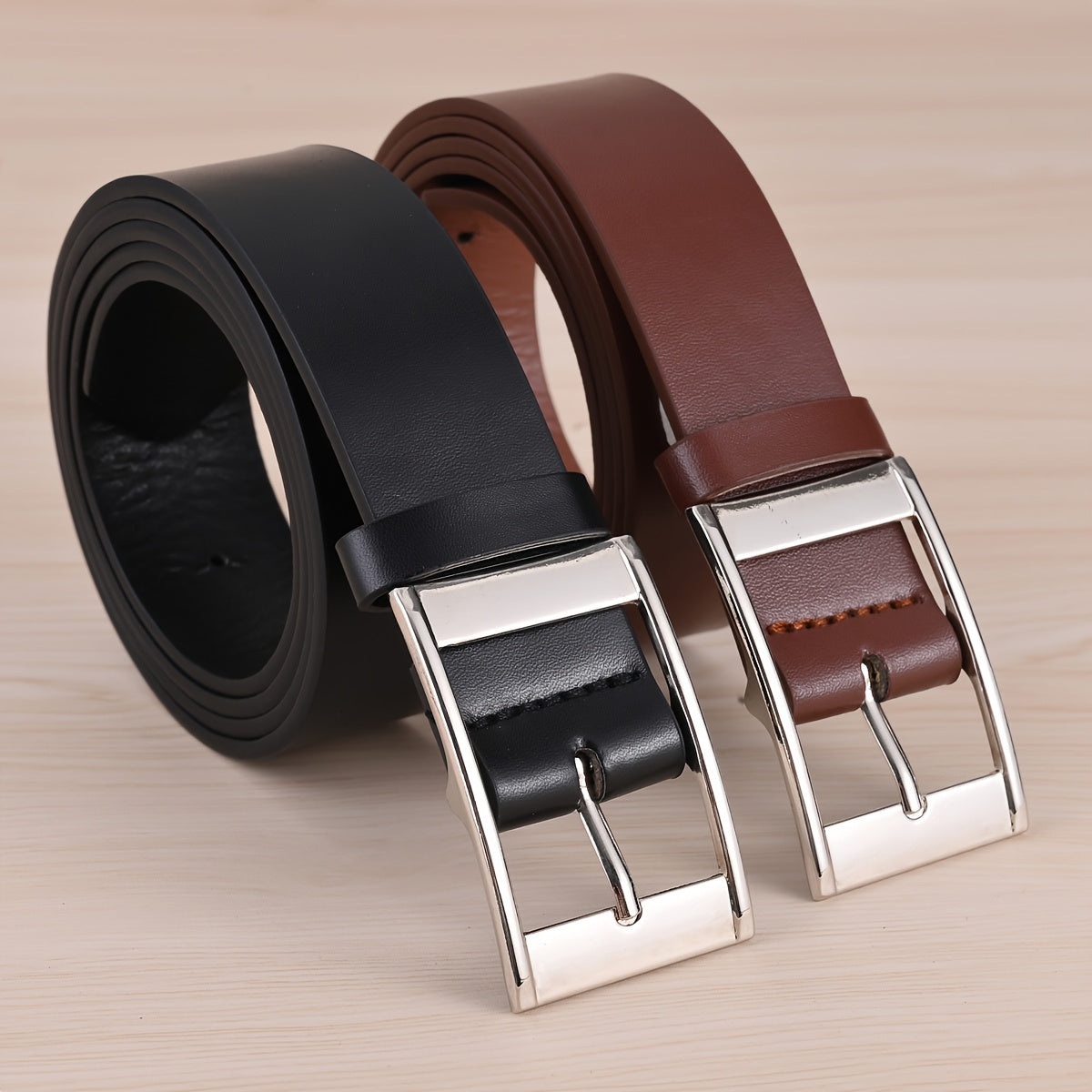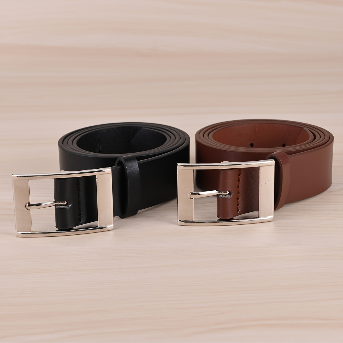 Lot de 2 ceintures fines en PU pour femmes – Boucle rectangulaire, noir et marron, tailles standard et grande taille, polyvalentes pour usage décontracté et bureau, design élégant, boucle métallique