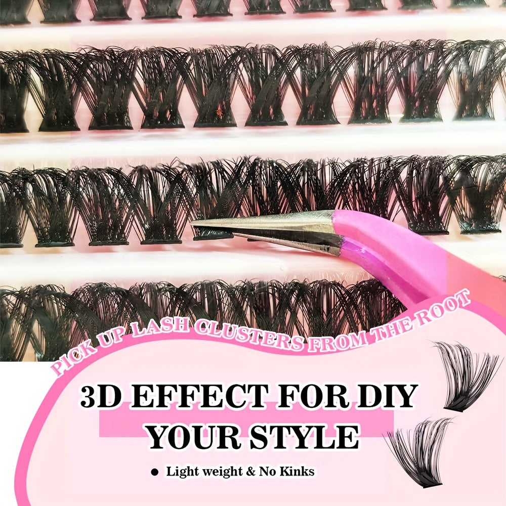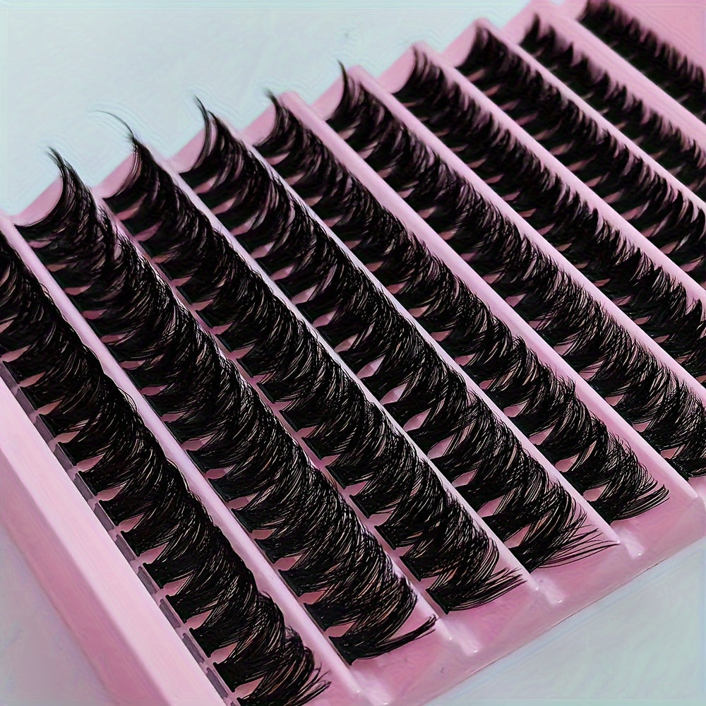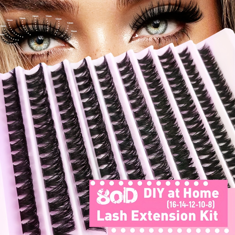 Kit de 200 extensions de cils à faire soi-même, touffes de cils courbés en D (80D), longueurs variées de 8 à 16 mm, effet naturel extra épais et fourni