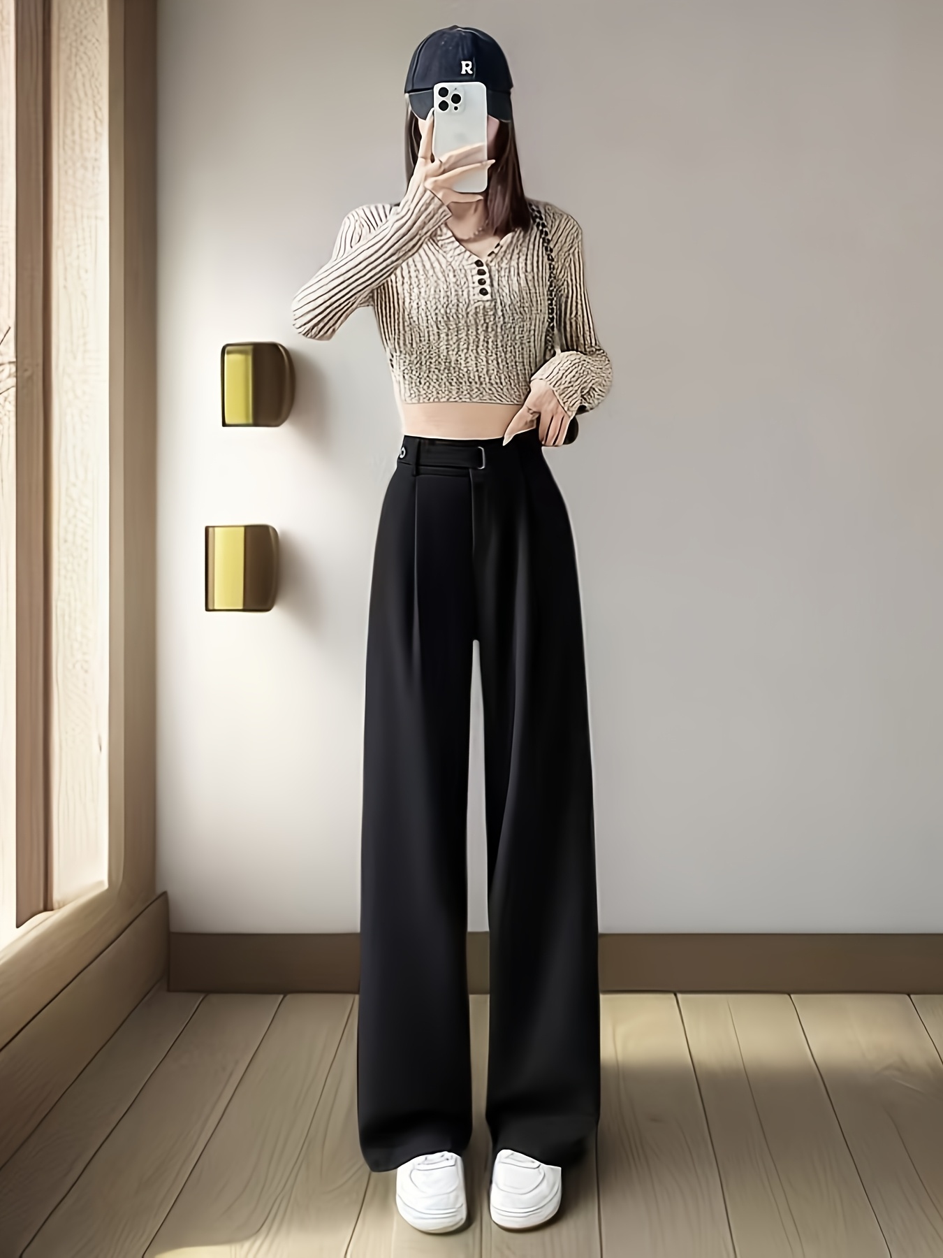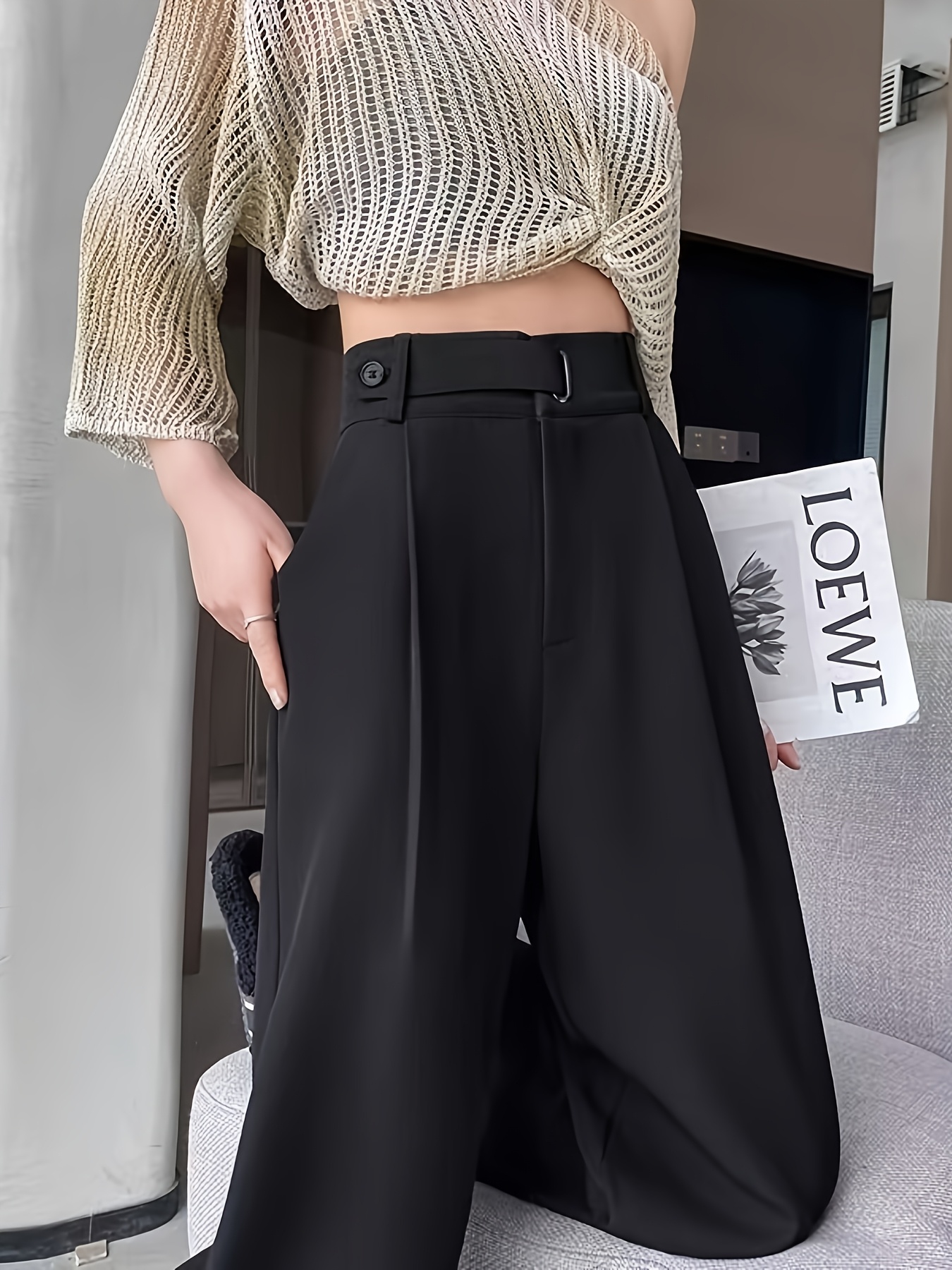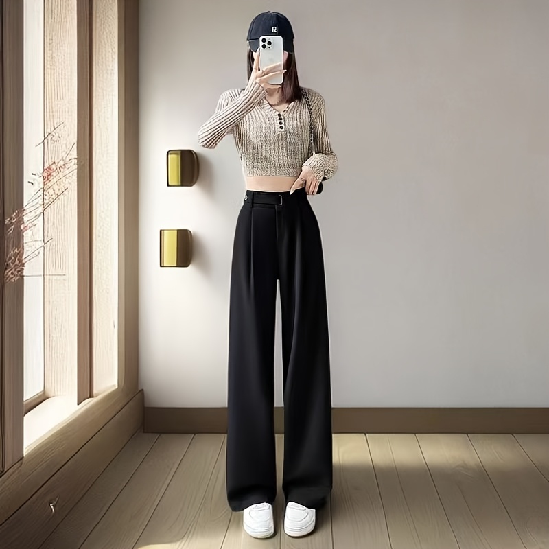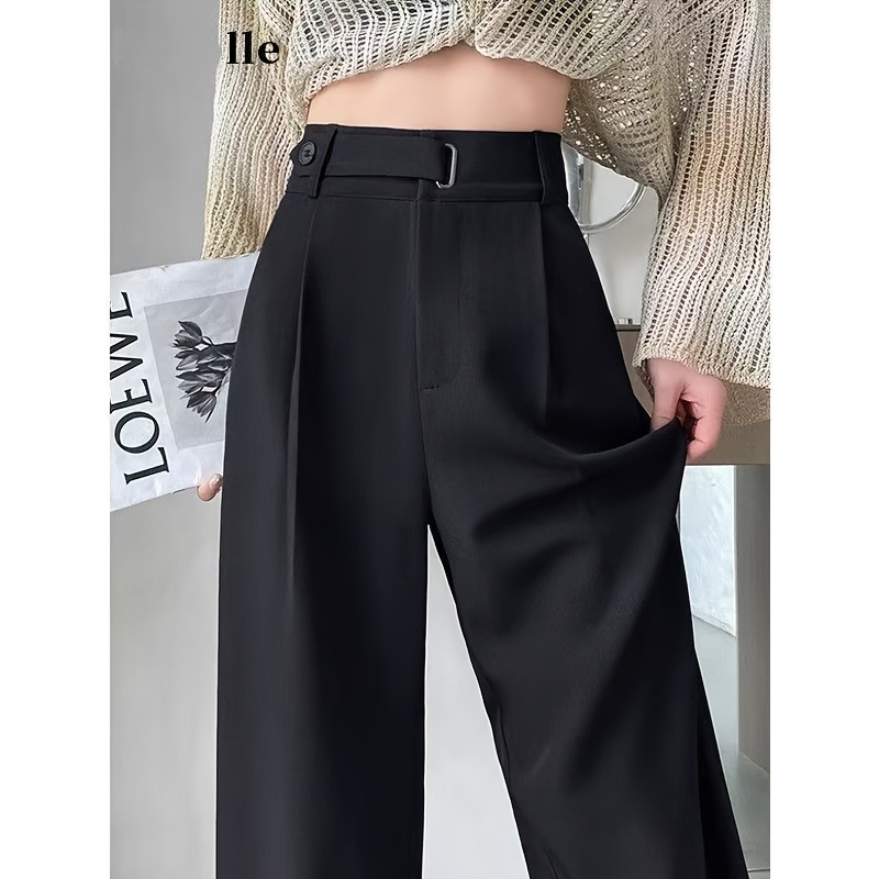 Pantalon Femme Noir 2025 – Costume Haut de Gamme, Taille Haute, Jambe Droite ou Large, Sans Ceinture, Printemps/Été/Automne