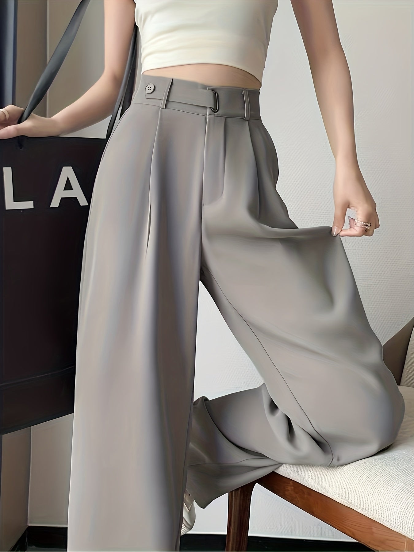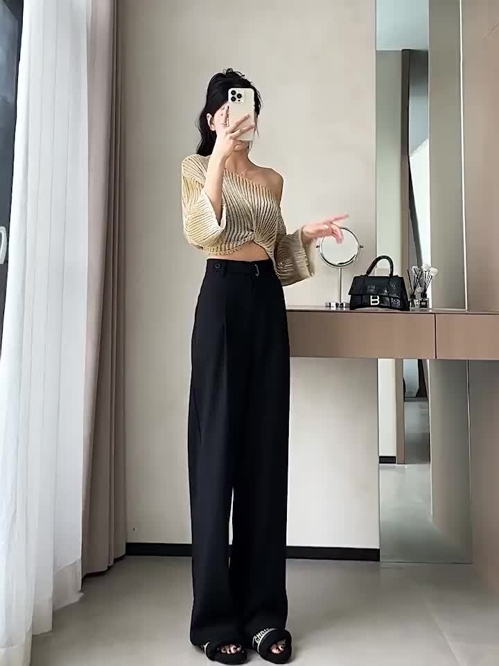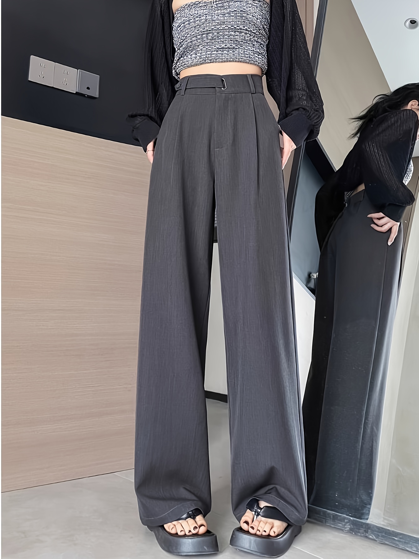 Pantalon Femme Noir 2025 – Costume Haut de Gamme, Taille Haute, Jambe Droite ou Large, Sans Ceinture, Printemps/Été/Automne