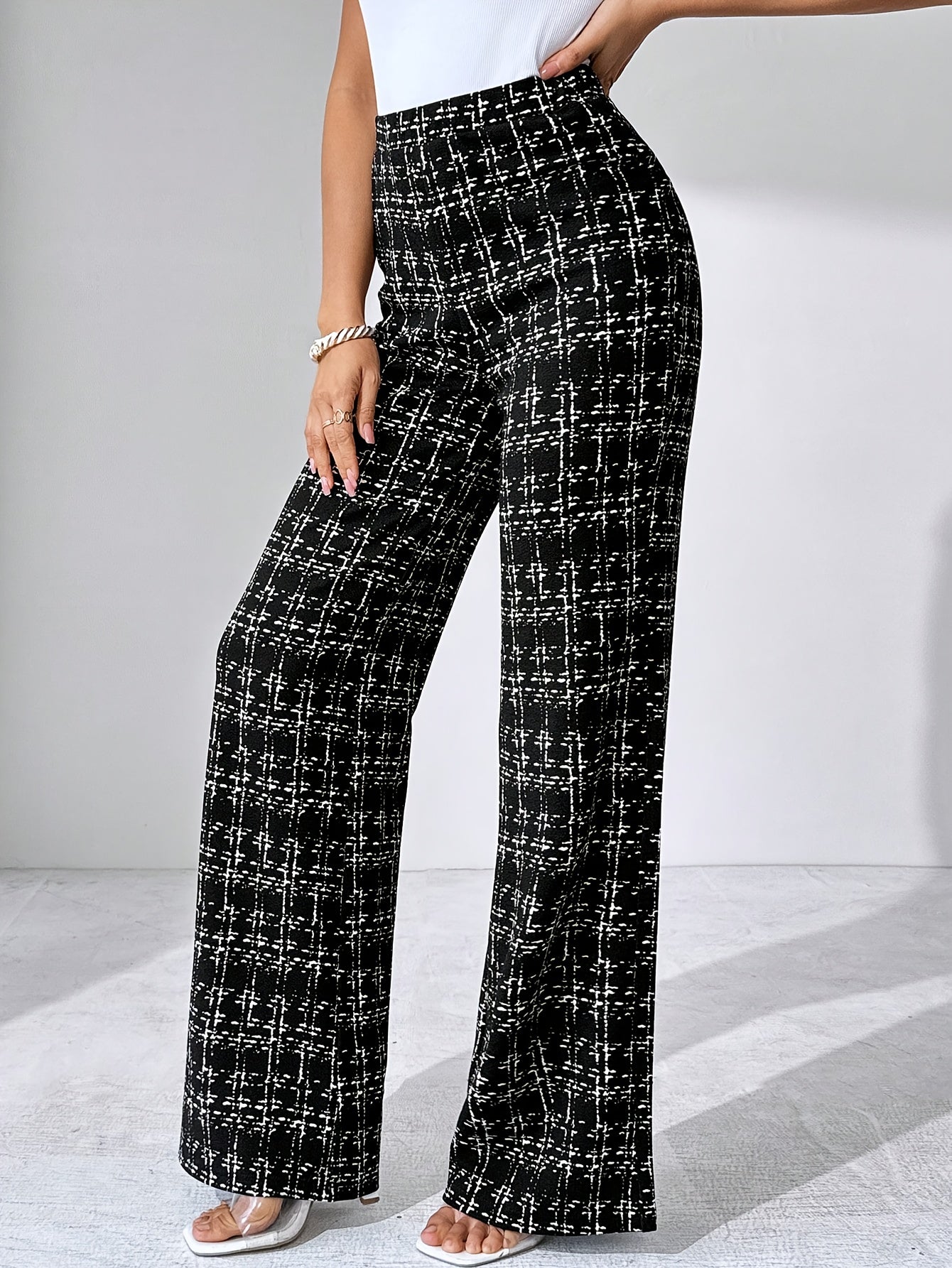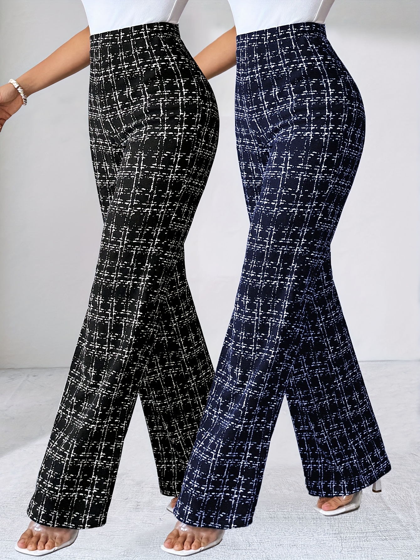 Lot de 2 Pantalons Femme Décontractés – Motif À Carreaux, Jambe Droite, Printemps/Été/Automne