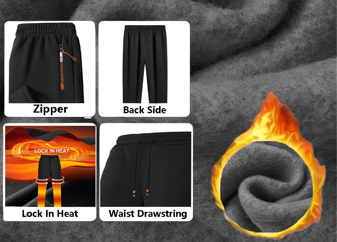 Pantalons thermiques en polaire pour homme (2 pièces) – poches zippées, taille à cordon, pantalons d’hiver chauds et résistants, idéals sport, course et activités extérieures, bleu marine, lavables à la main