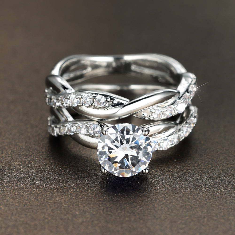 2pcs/Set Dainty Twist Round Cut White synthetic Synthetic Synthetic Zirconia Ring Set Bridal EngaSynthetic Gemstoneent Ring, Party Jewelry, Gift for Her, Elegant Rings, Twist Design, Synthetic Ring, Plated Jewelry, Fashion Je