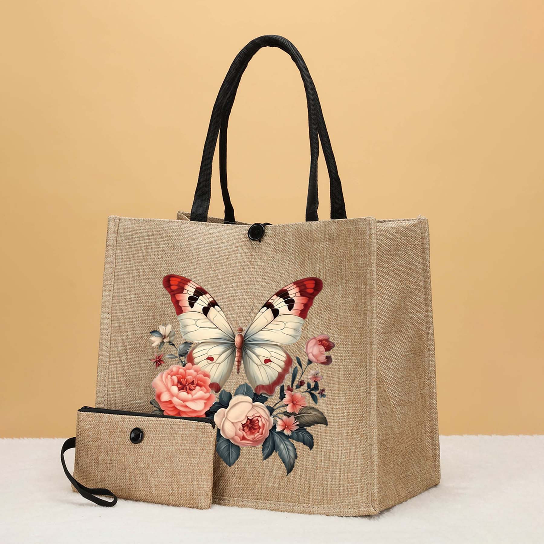 Set 2 Sacs Cabas à Motif Papillon et Fleurs – Tissu Durable, Fermeture à Boucle, Portefeuille Inclus, Idéal pour Shopping, Voyages, Plage – Cadeau Parfait pour Enseignants, Amies, Camarades de Classe, Meilleures Amies et Sœurs