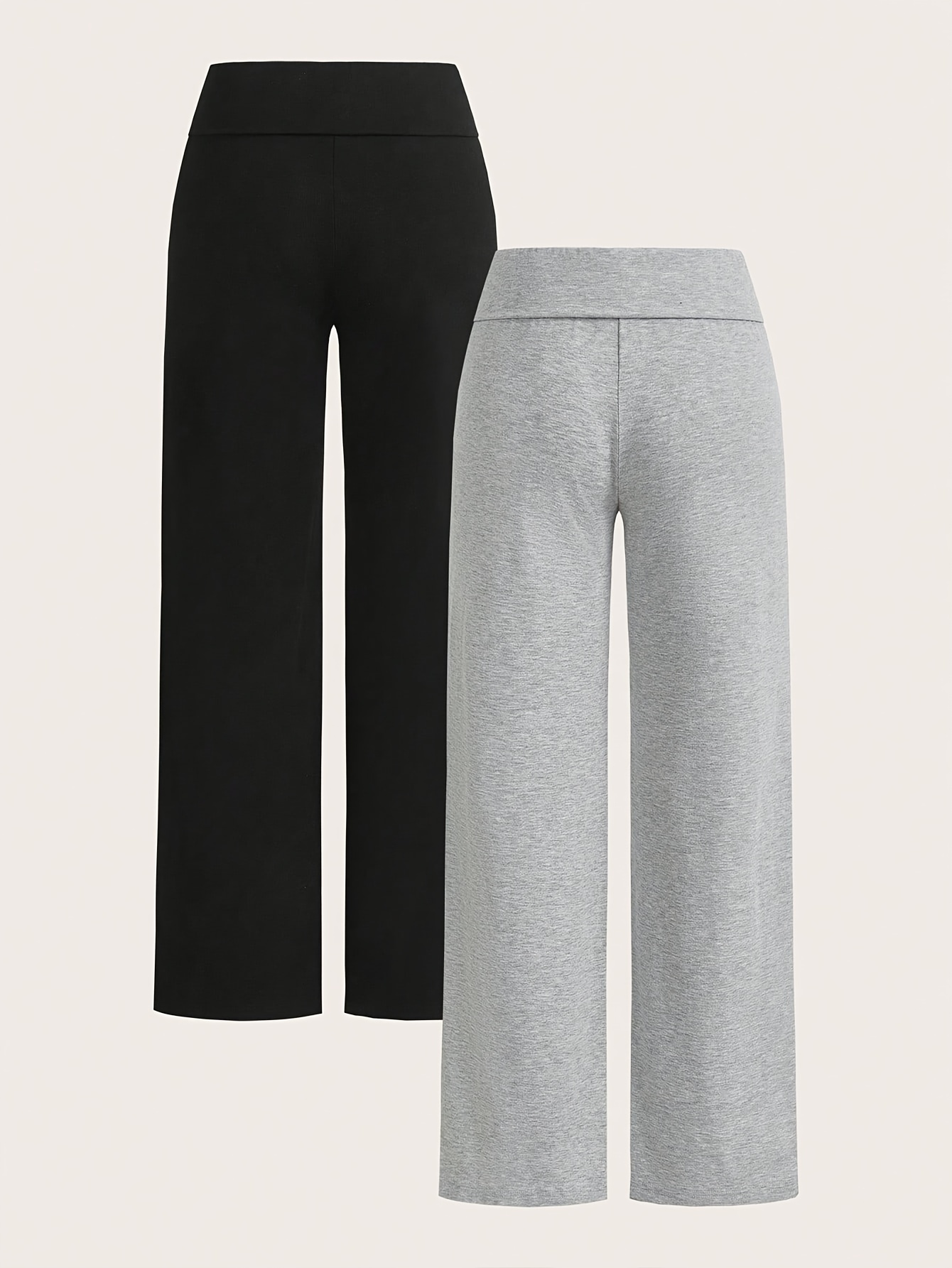 Lot de 2 Pantalons Femme – Taille Haute, Jambe Large Droite, Décontracté et Confortable, Tous Saisons