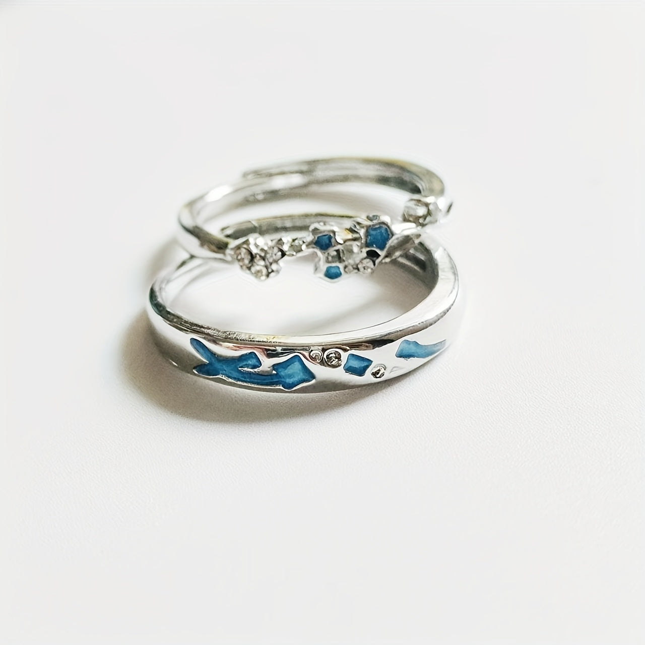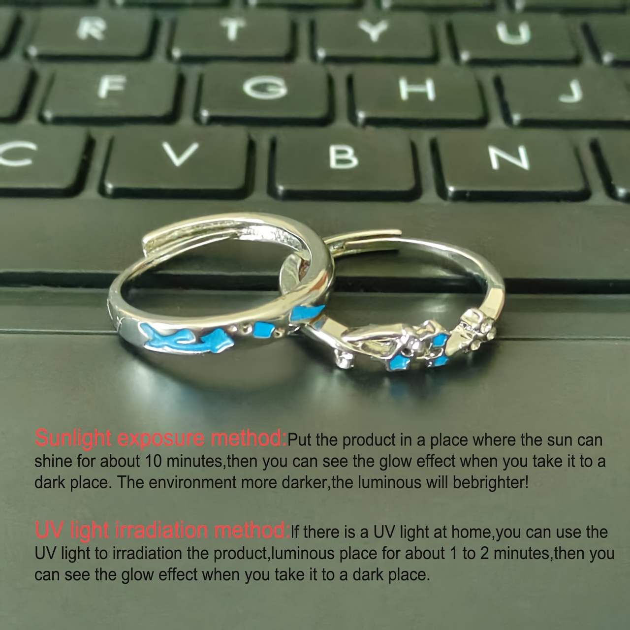 2pcs Women's Fashion Open Ring, Cross-border New Starry Night Couple Luminous Pair Rings, Niche Design High-end Dark Fluorescent Rhinestone Ring, Adjustable Activity Couple Style for Men and Women, Gift for Eld, Gift for Rama