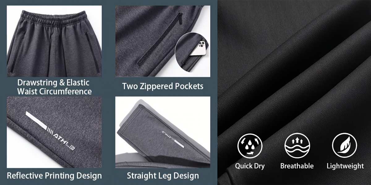Lot de 3 Joggers Homme – Tissu Maille Douce, Taille à Cordon, Jambe Droite, Poches Zippées, Gris Chiné/Bleu Marine