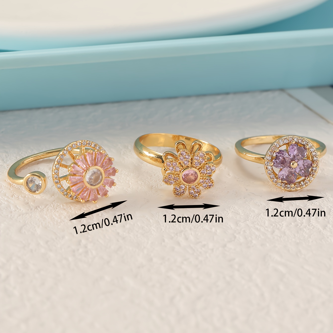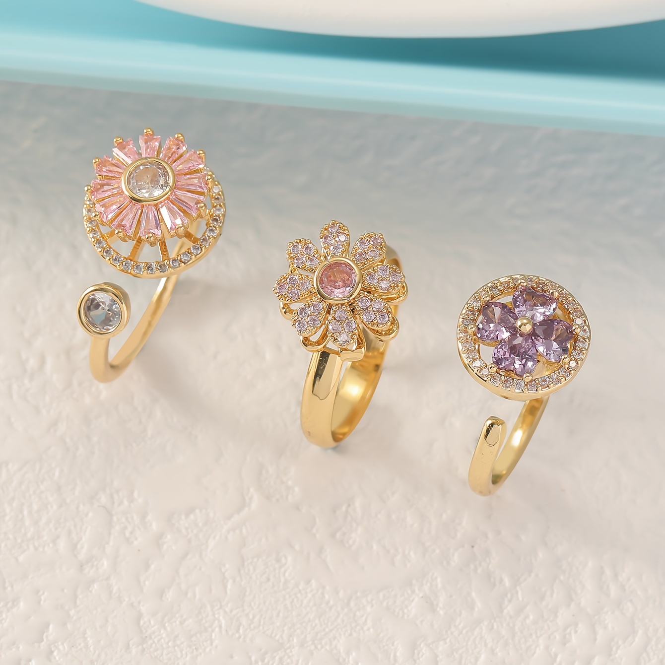 3pcs Set of Rotating Ring Copper Micro-Set Zirconium Ring with Open Color Preservation Design Hand Ornament