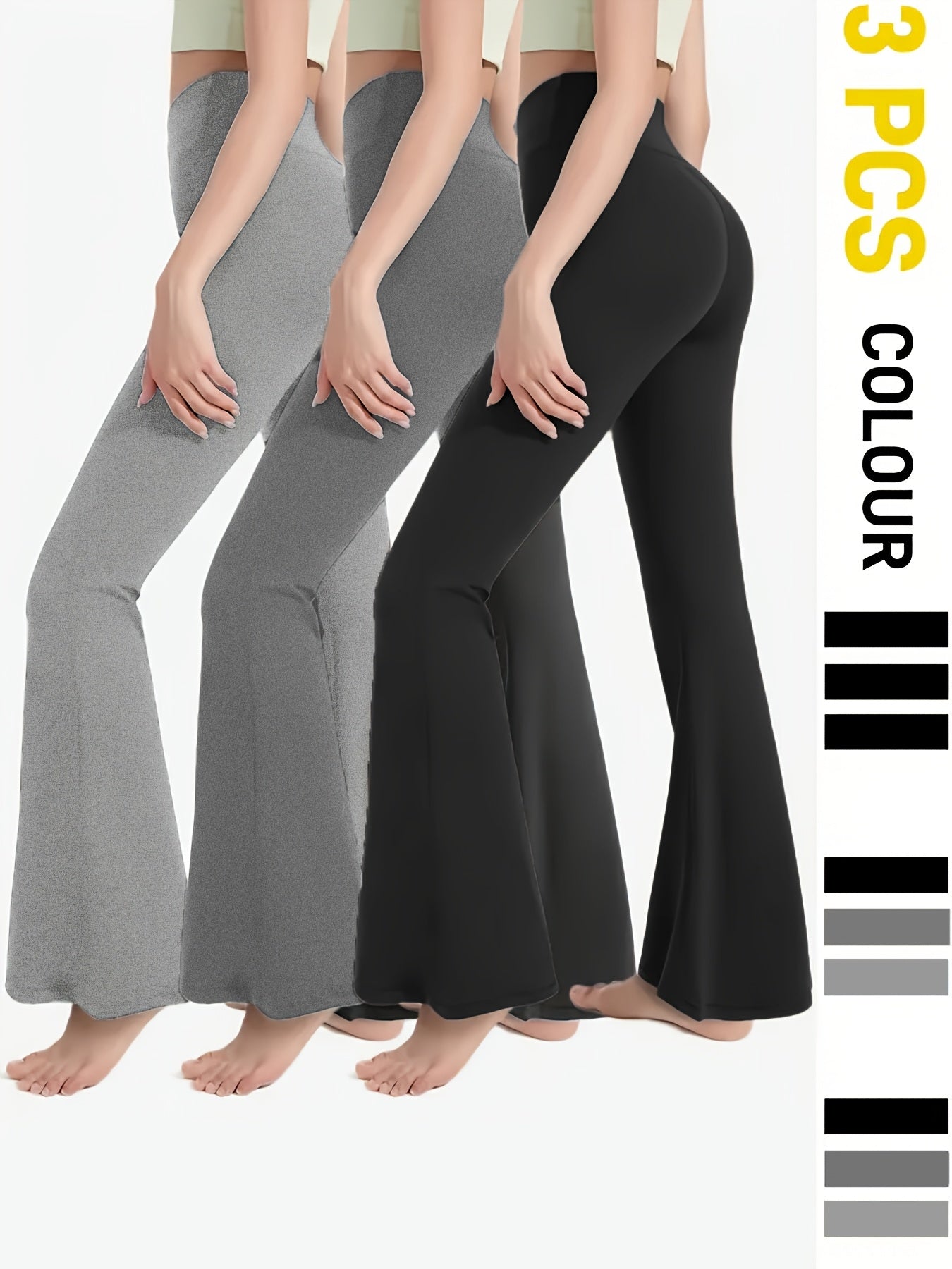Lot de 3 Pantalons Femme Évasés – Séchage Rapide, Respirants, Taille Élastique, Couleur Unie, Tous Saisons, Décontracté et Confortable