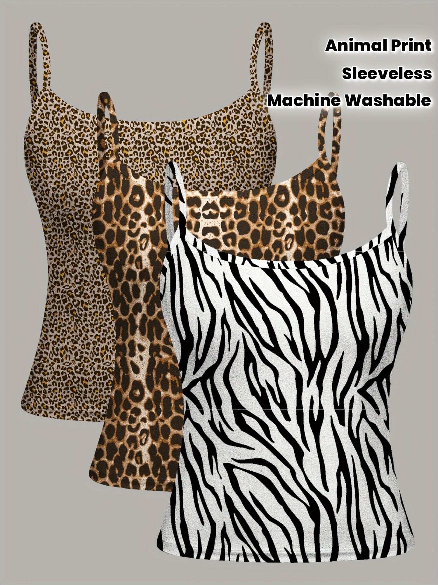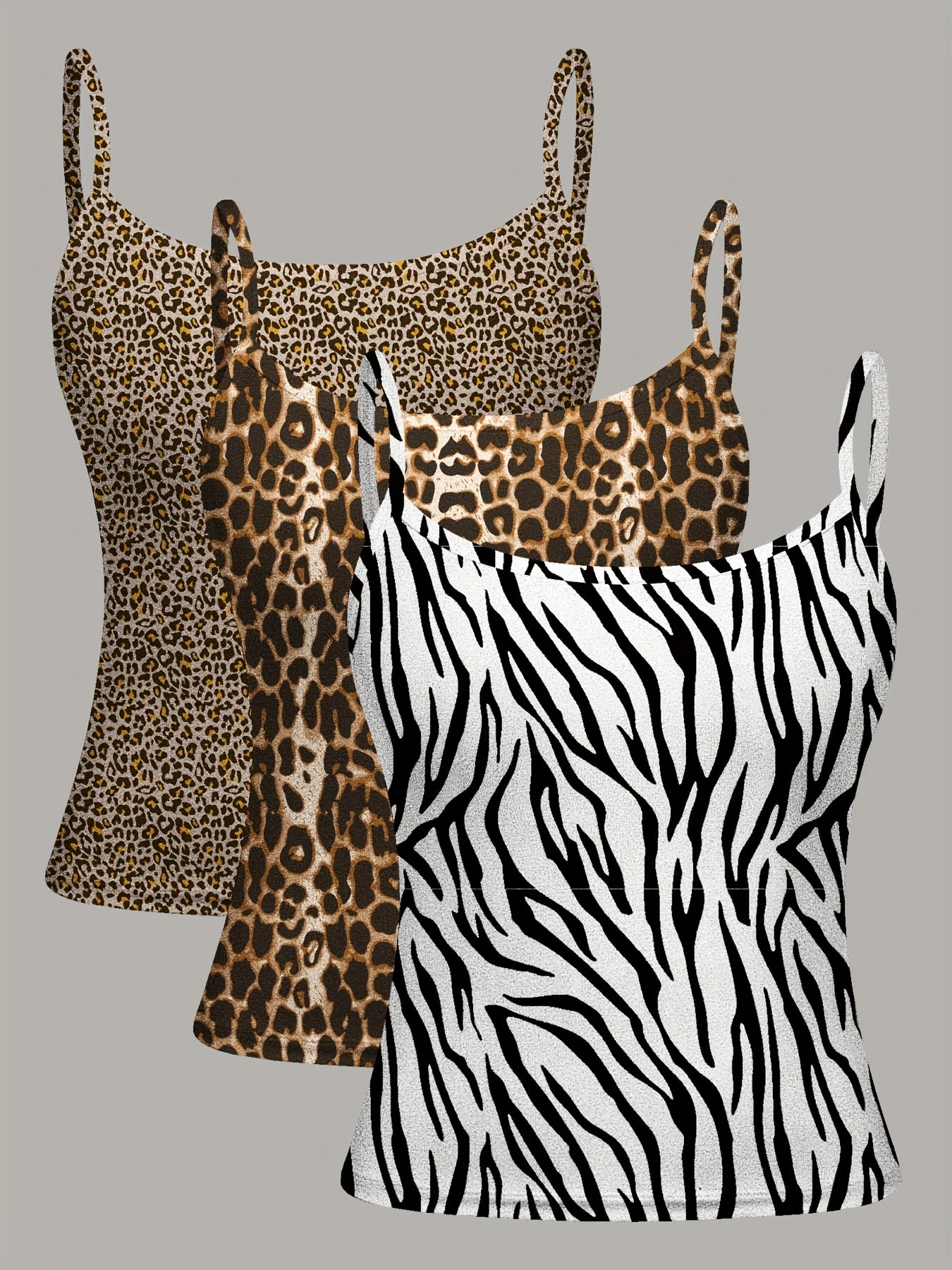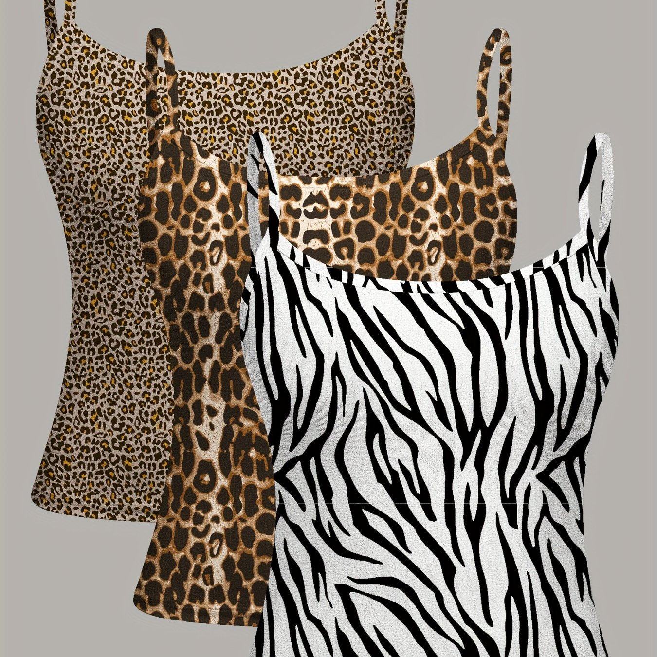 Lot de 3 Débardeurs Femme – Imprimé Léopard et Zèbre, Col Rond, Sportifs et Extensibles