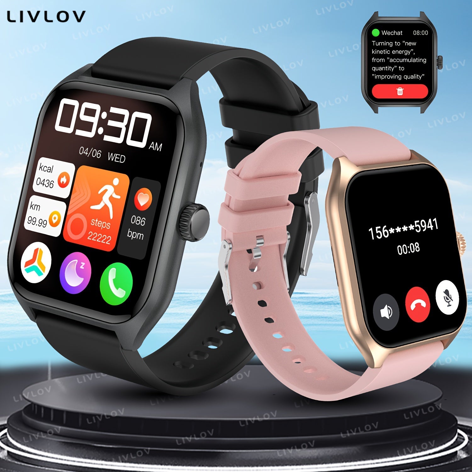 Main function: Wireless call,Voice assistant,Raise the hand on the screen,SMS,Multiple sports modes,Weather,Flashlight, Clock display,Alarm clock,SOS,Game,Calculator,Music,Versatile dial,Custom Dial wallpaper, Sedentary reminder,Remote photography,Step distance,Calorie