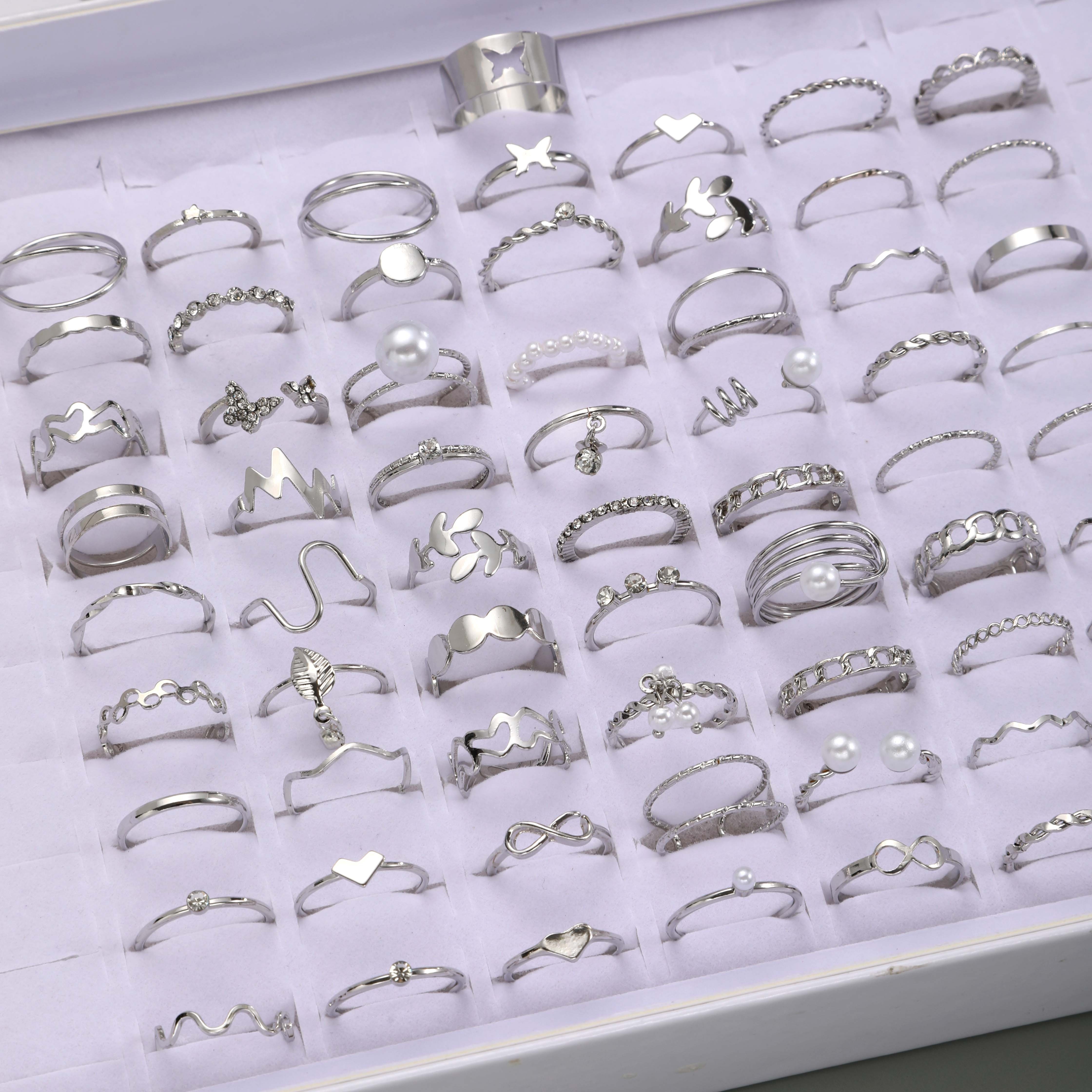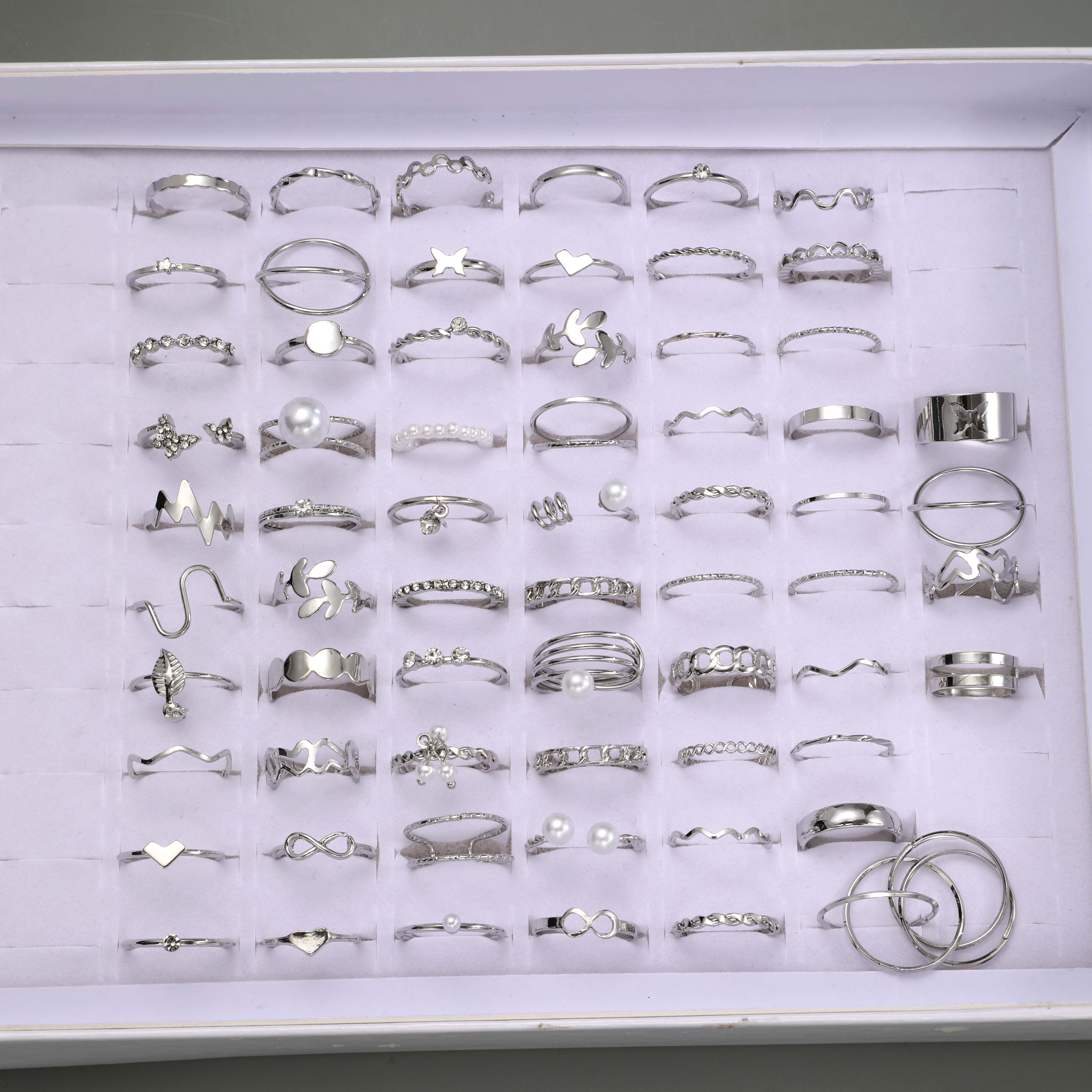 64pcs Fashion Gothic Style Silvery Hollow Stacking Ring Set for Women, Daily Wear Jewelry Accessories, No Box Included