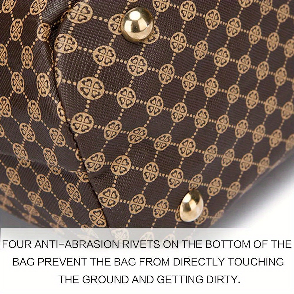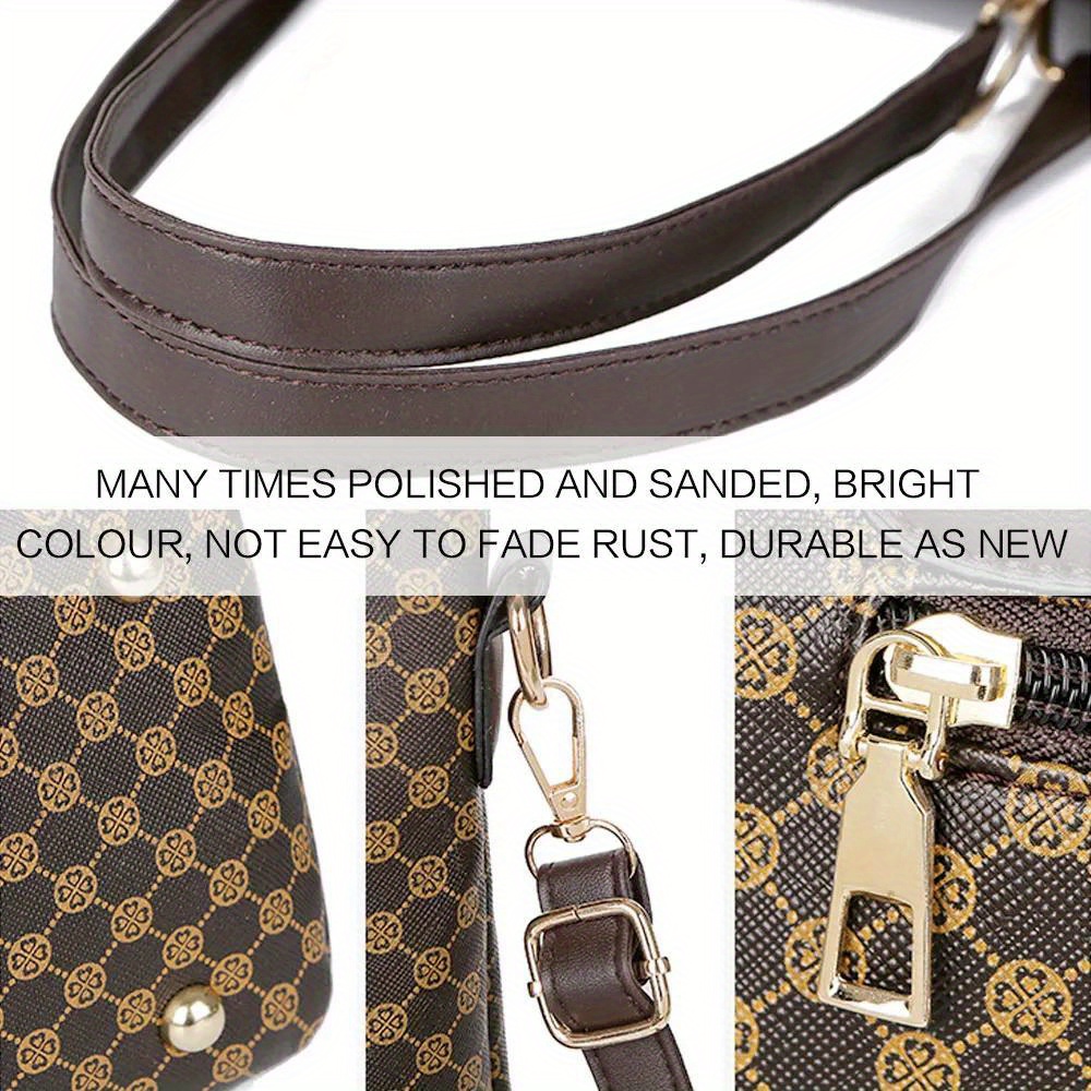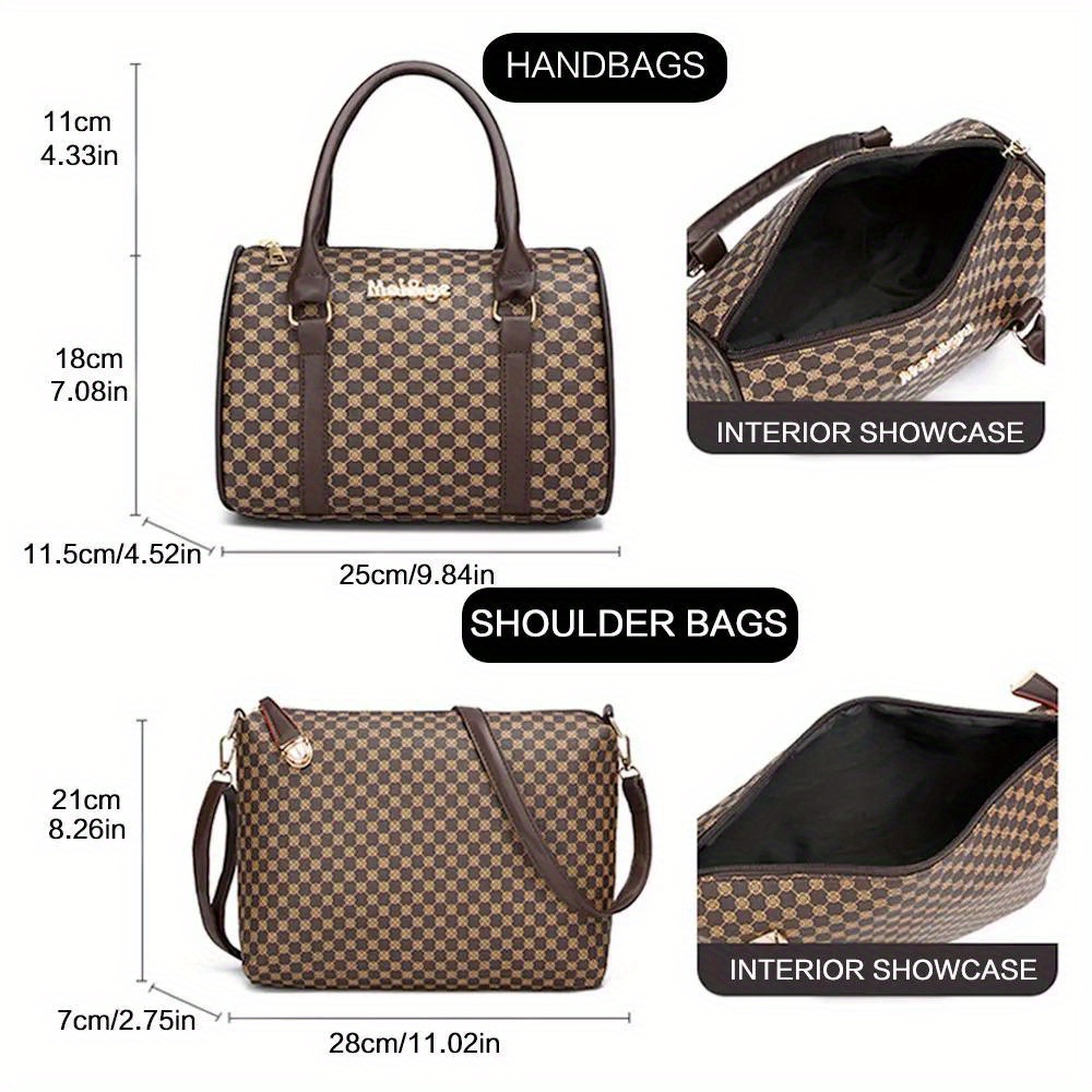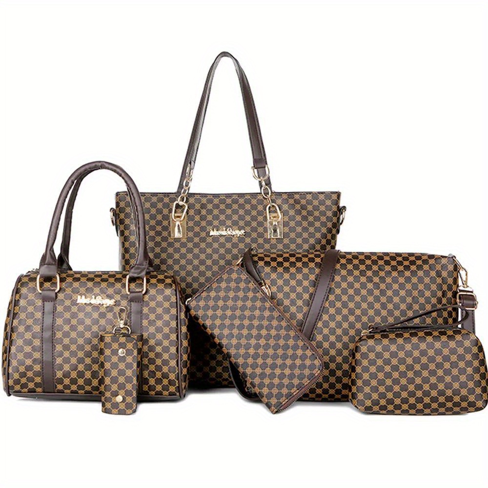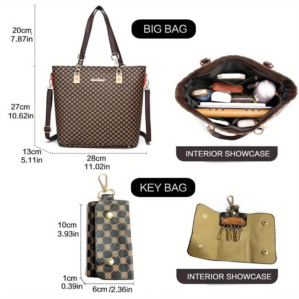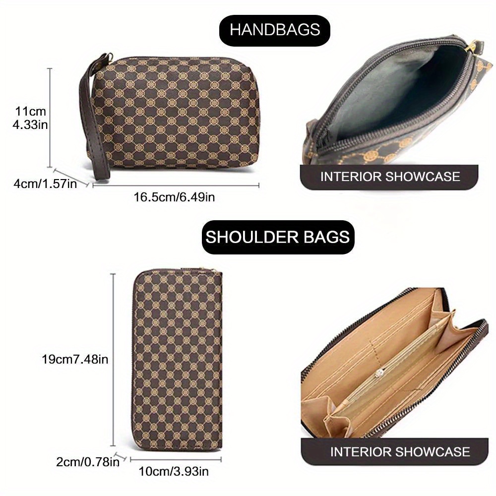 Fashionable Print: Trendy fashion print design for a chic, eye-catching look. Spacious: Ideal for carrying essentials like phones, wallets, and keys, with extra space for other items. Large Bag with Multi-Purpose Accessories: Includes a large bag, handbag, shoulder bag, wallet, key pouch, and clutch bag for versatile use. Care Instructions: Keep away from high temperatures. Clean the bag with a damp cloth and store it in a dry, ventilated space. size:as shown color:Brown, Khaki, Black
