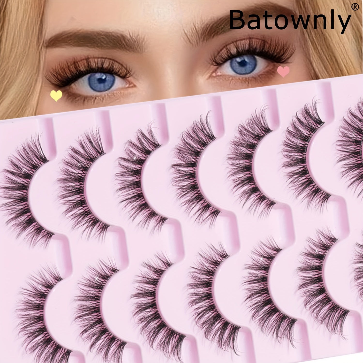 7 Paires de Cils Postiches Naturels – Style Croisé Queue de Poisson, D Curl, Base Transparente, Effet Naturel