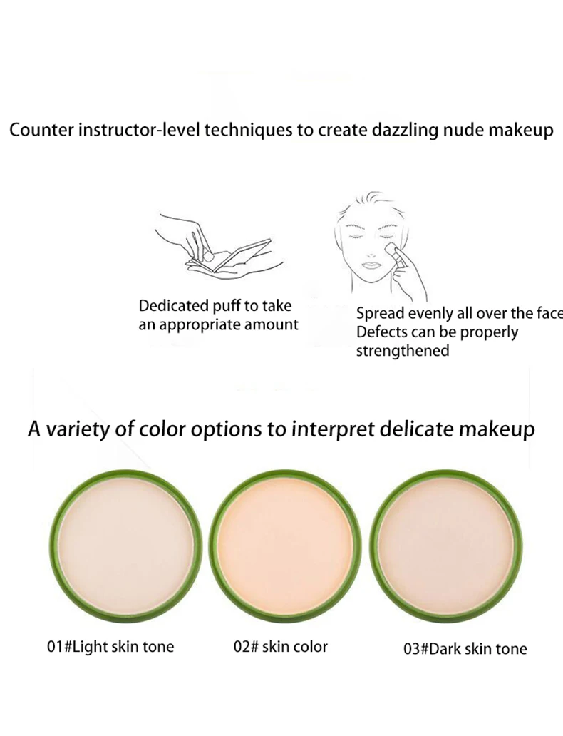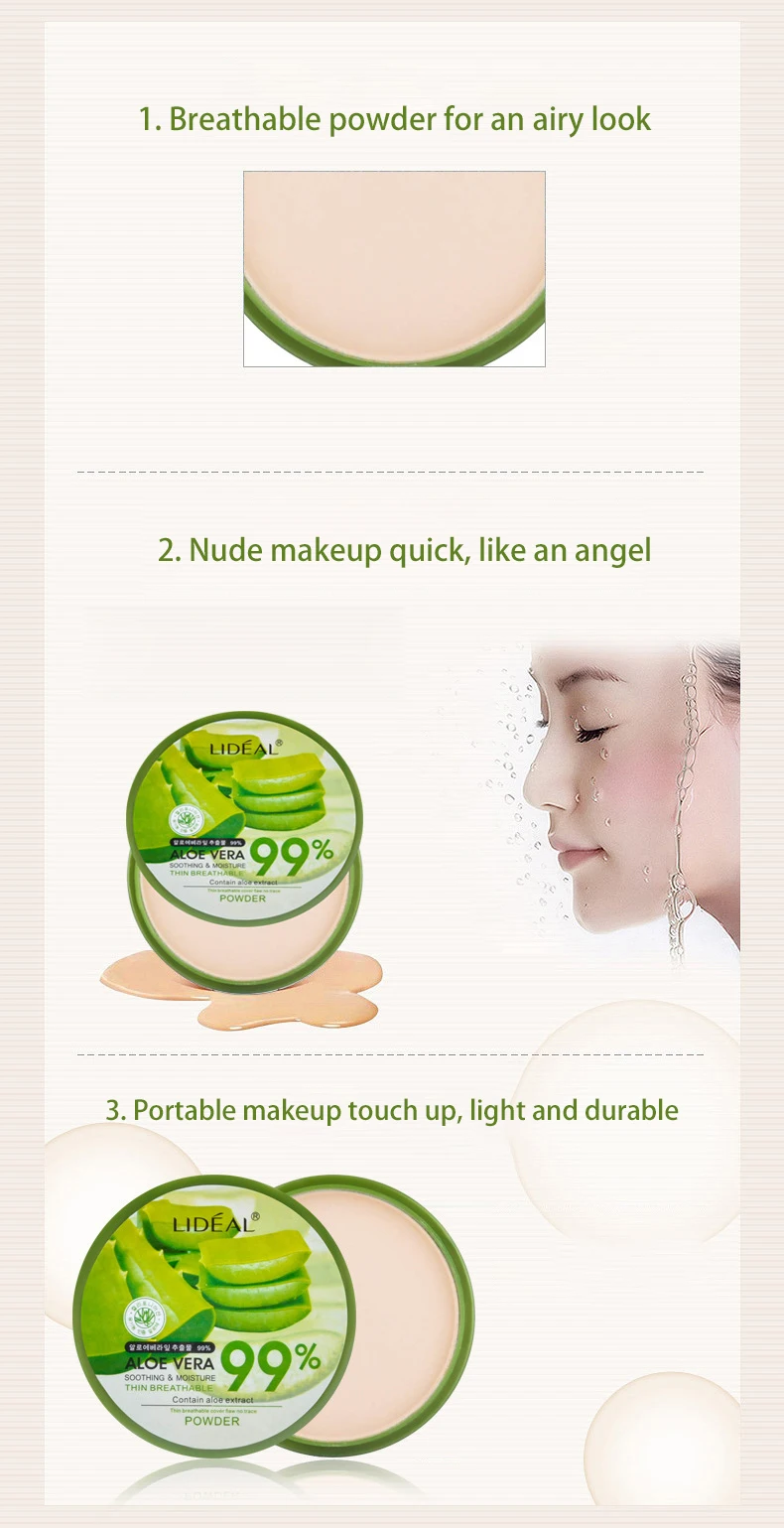 Poudre Compacte 99% Aloe Vera – Fond de Teint Lissant, Anti-Pores, Correctrice, Éclaircissante et Illuminatrice