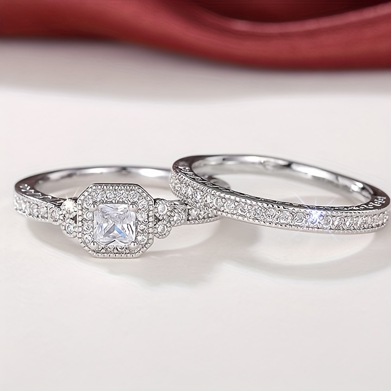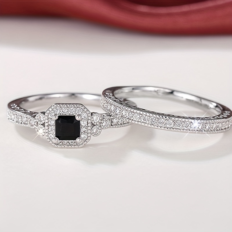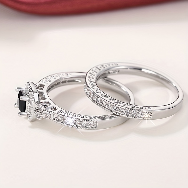 A Pair of Stylish And Luxurious Women'S Rings Featuring Copper Inlaid Synthetic Zirconia Stones, Perfect for High-End Sets, Engagement, And Couple'S Rings, Ideal As Holiday Or Anniversary Gifts.