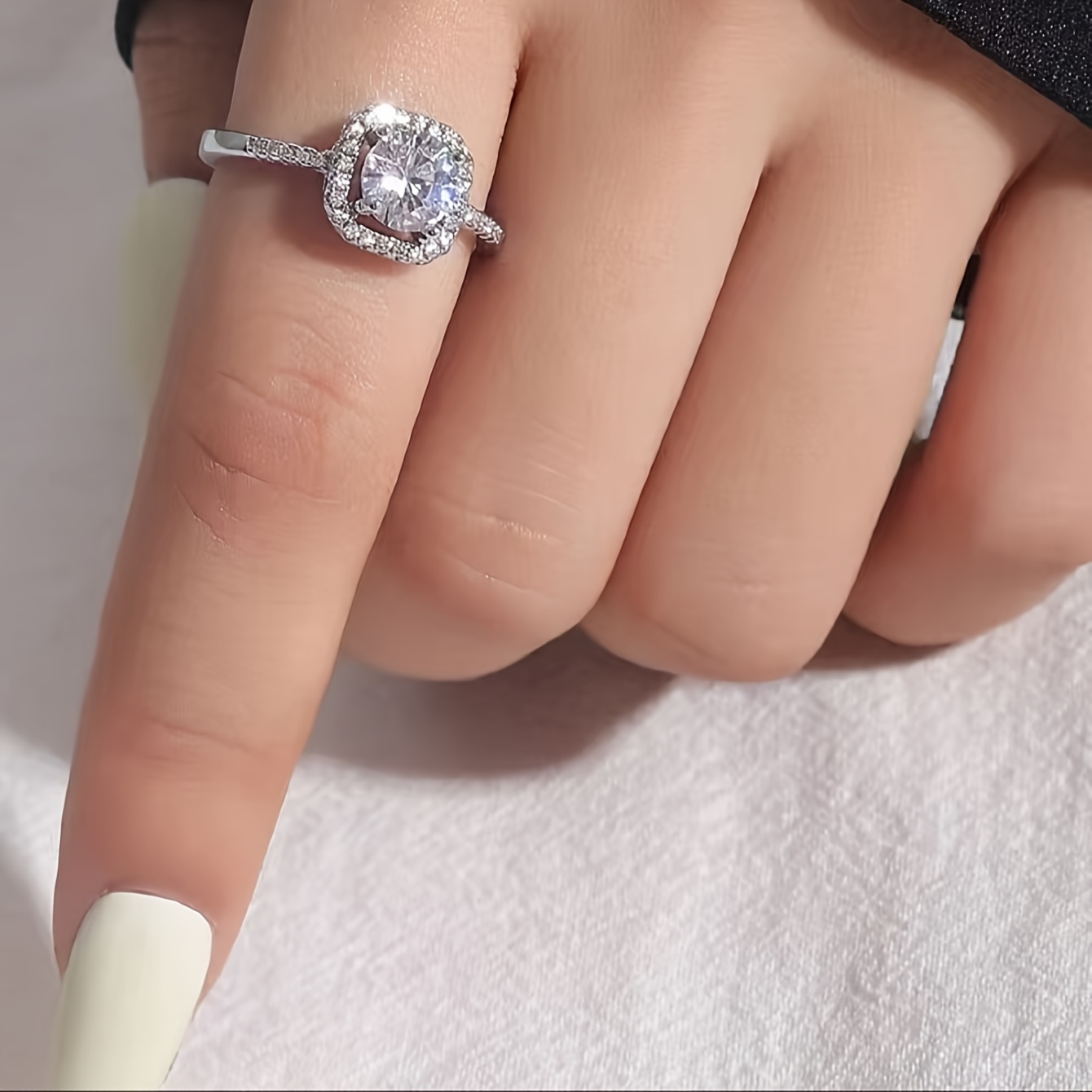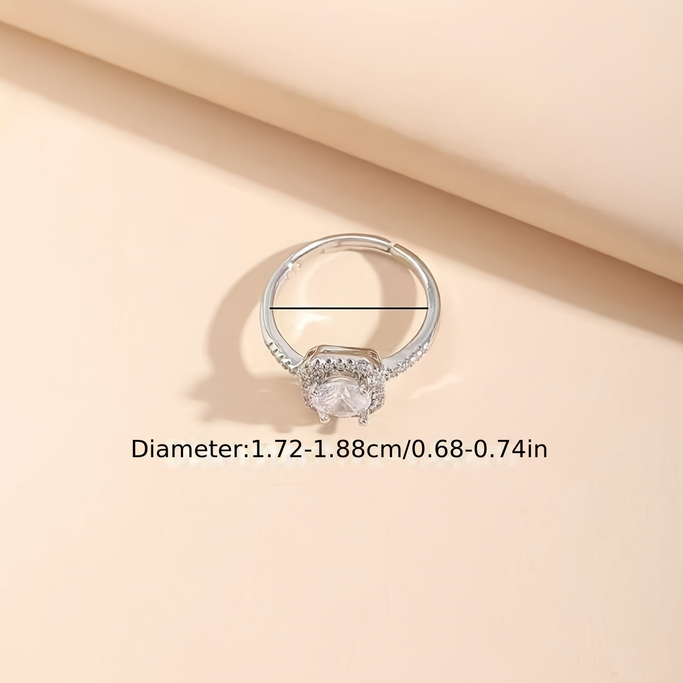 A Square-cut Copper Open Ring with Micro-set Synthetic Synthetic Zirconia, Suitable for Women's Daily Wear
