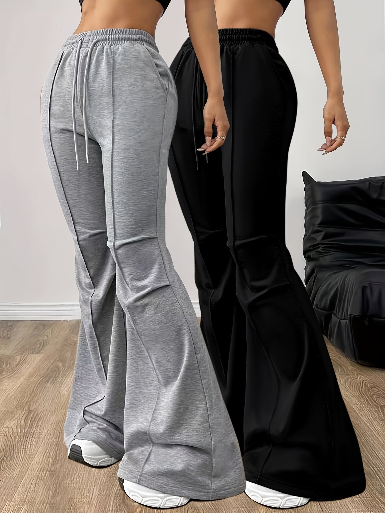 Ensemble Deux-Pièces Femme – Pantalon Évasé Taille Élastique avec Cordon