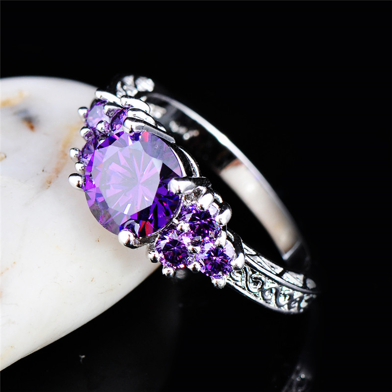 Aesthetic Female Ring Luxury Inlay CZ Purple White Olive Green Stone Fashion Wedding Bands Ring Jewelry for Women