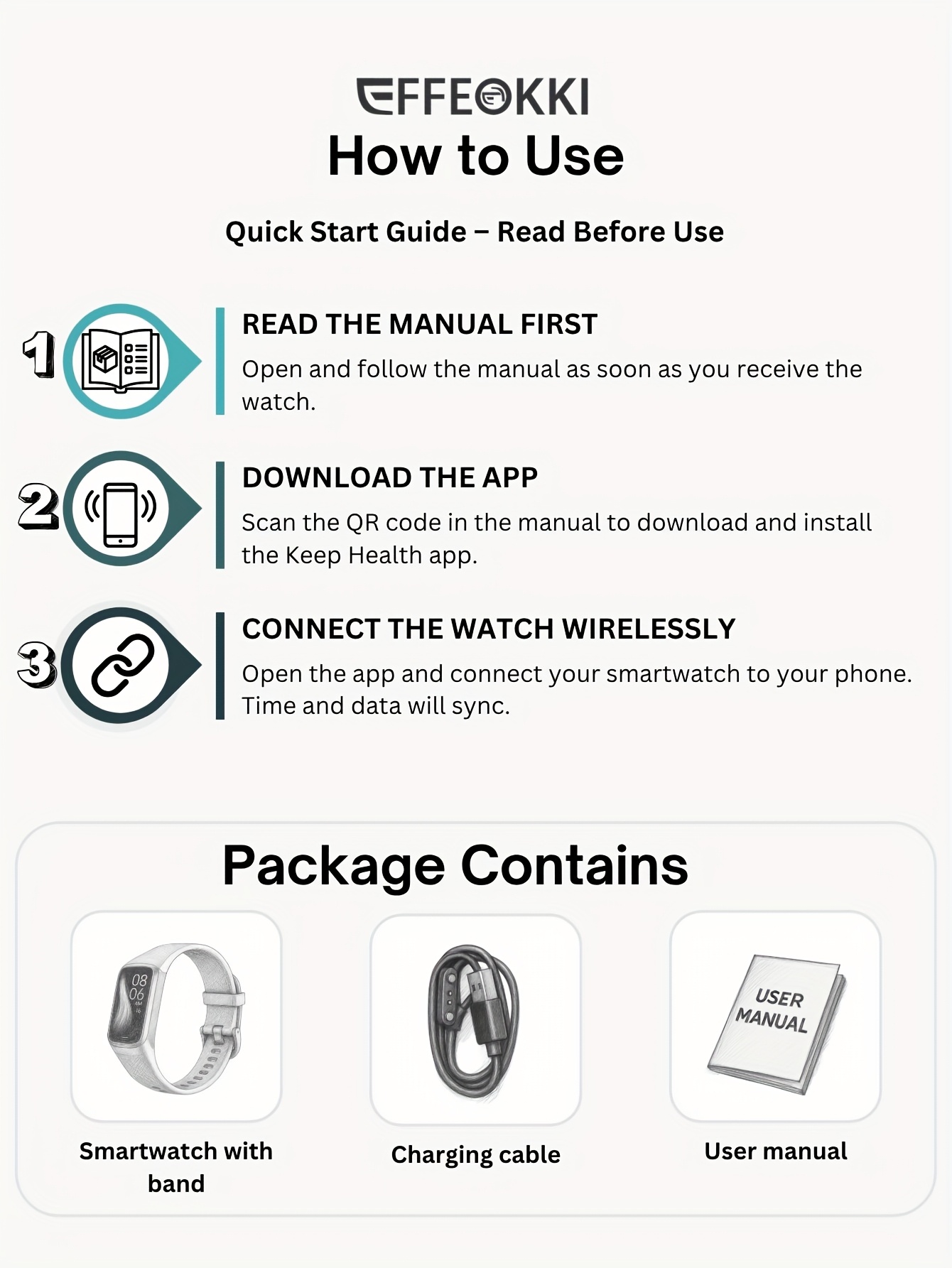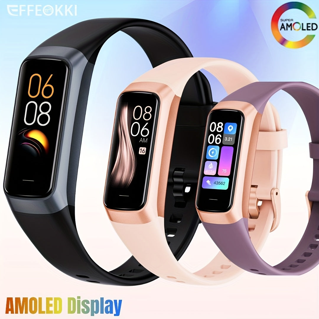 AFFEOKKI Amoled Fitness Smartwatch for Men & Women - Multiple Sports Modes, Pedometer Tracker, Stopwatch, Message Alerts, Calorie Tracker, Daily Activity Logging, for iPhone & Android Phone, Silicone Band, USB Charging, Wirel