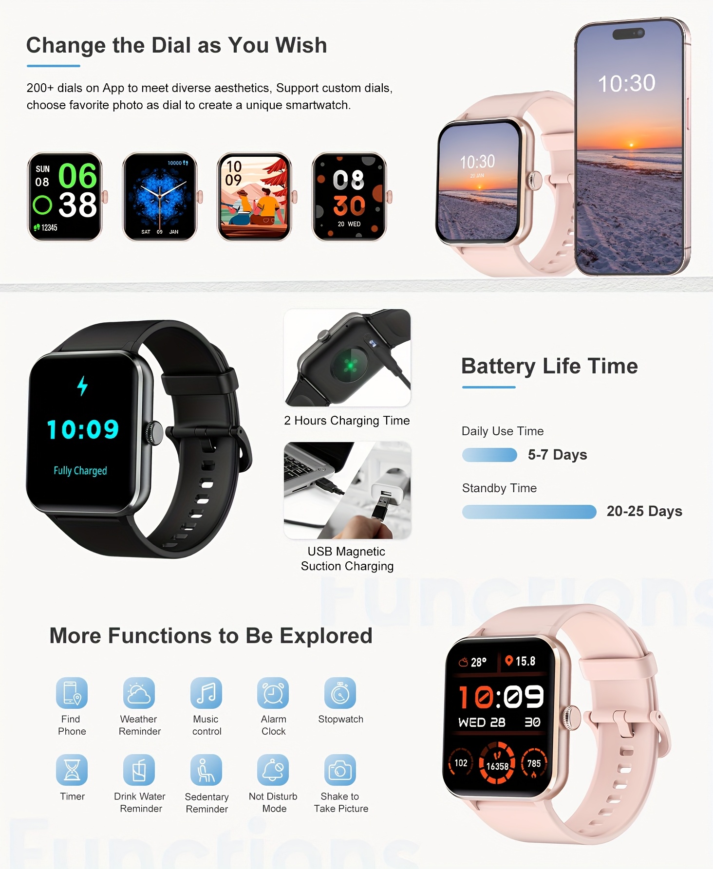 Blackview Smartwatch, Compatible With Android And For IPhone, Fitness Tracker, Fitness Watch With Activity Monitoring 1.85-Inch Touchscreen Smartwatch, With Pedometer, Calorie Meter And Stopwatch, BT 5.3 Call, Multi-Sport Mod