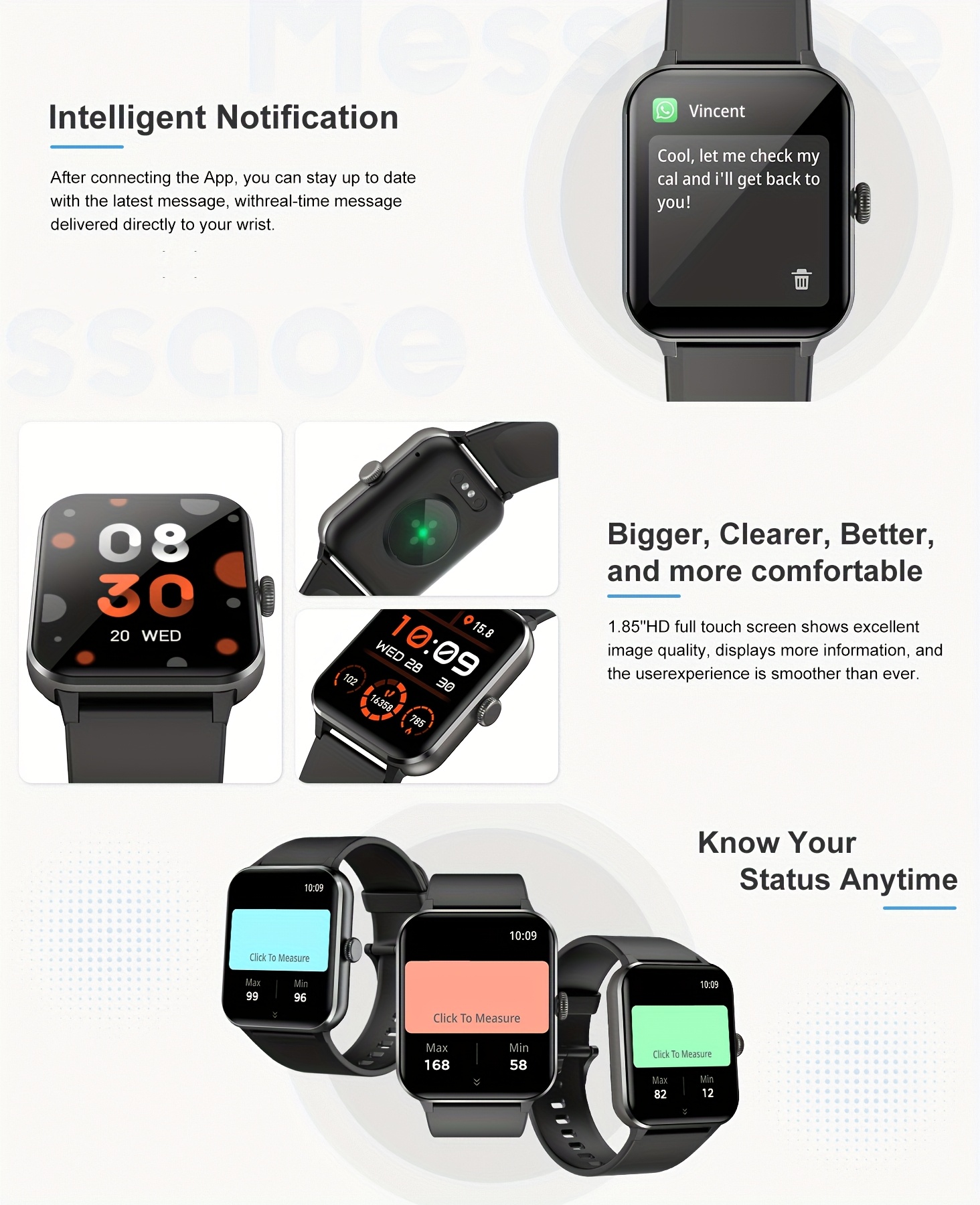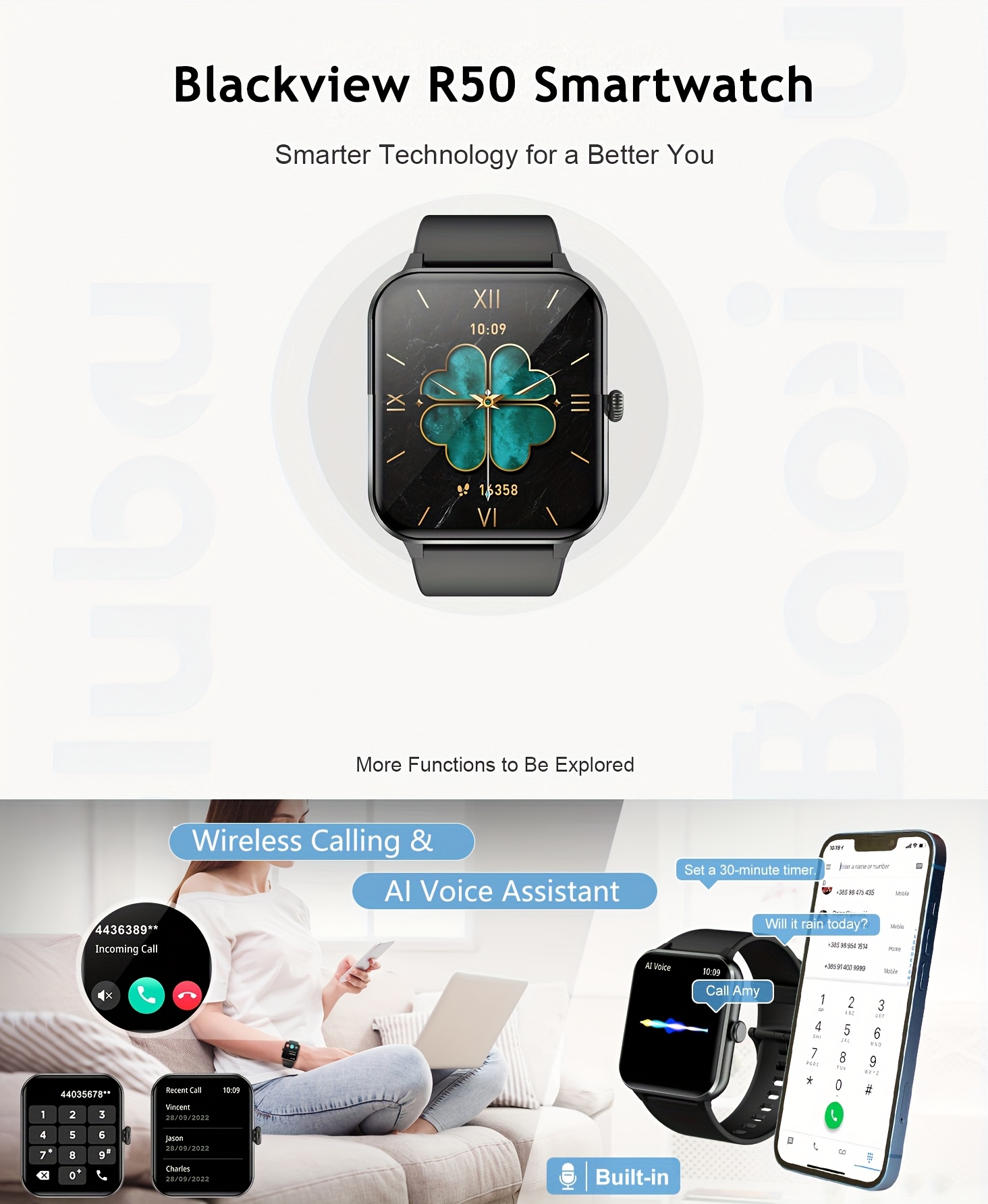 Package Includes: blackview smartwatch*1, watch band*2, magnetic charger*1, user manual*1.