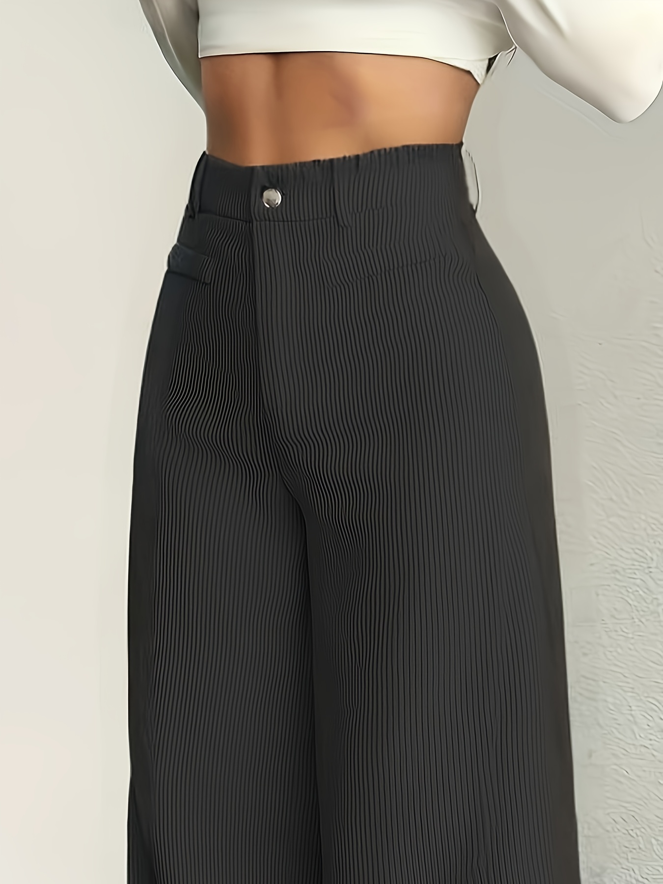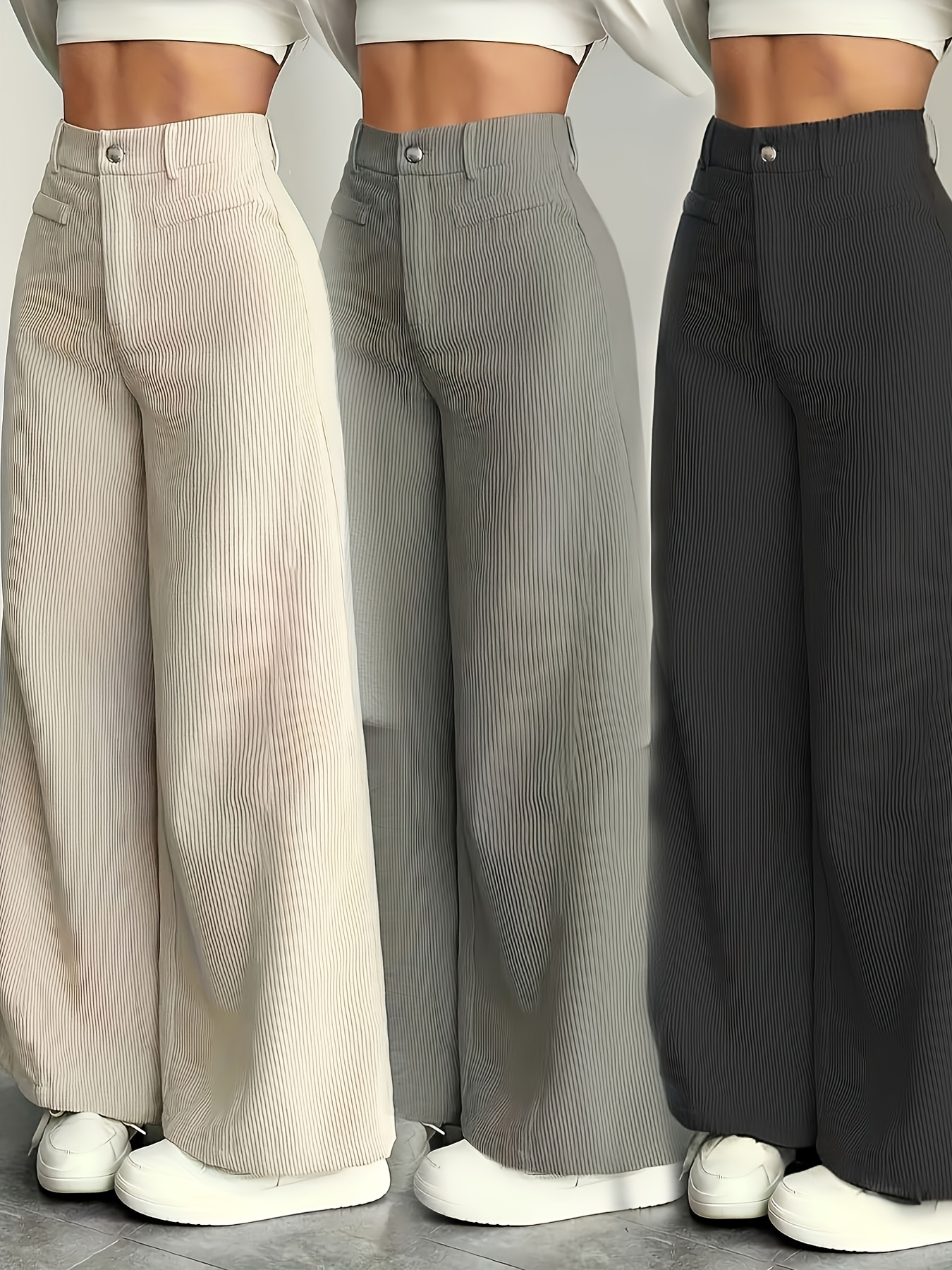 Ensemble trois pièces beige pour femme : pantalon taille haute à jambes larges en velours côtelé