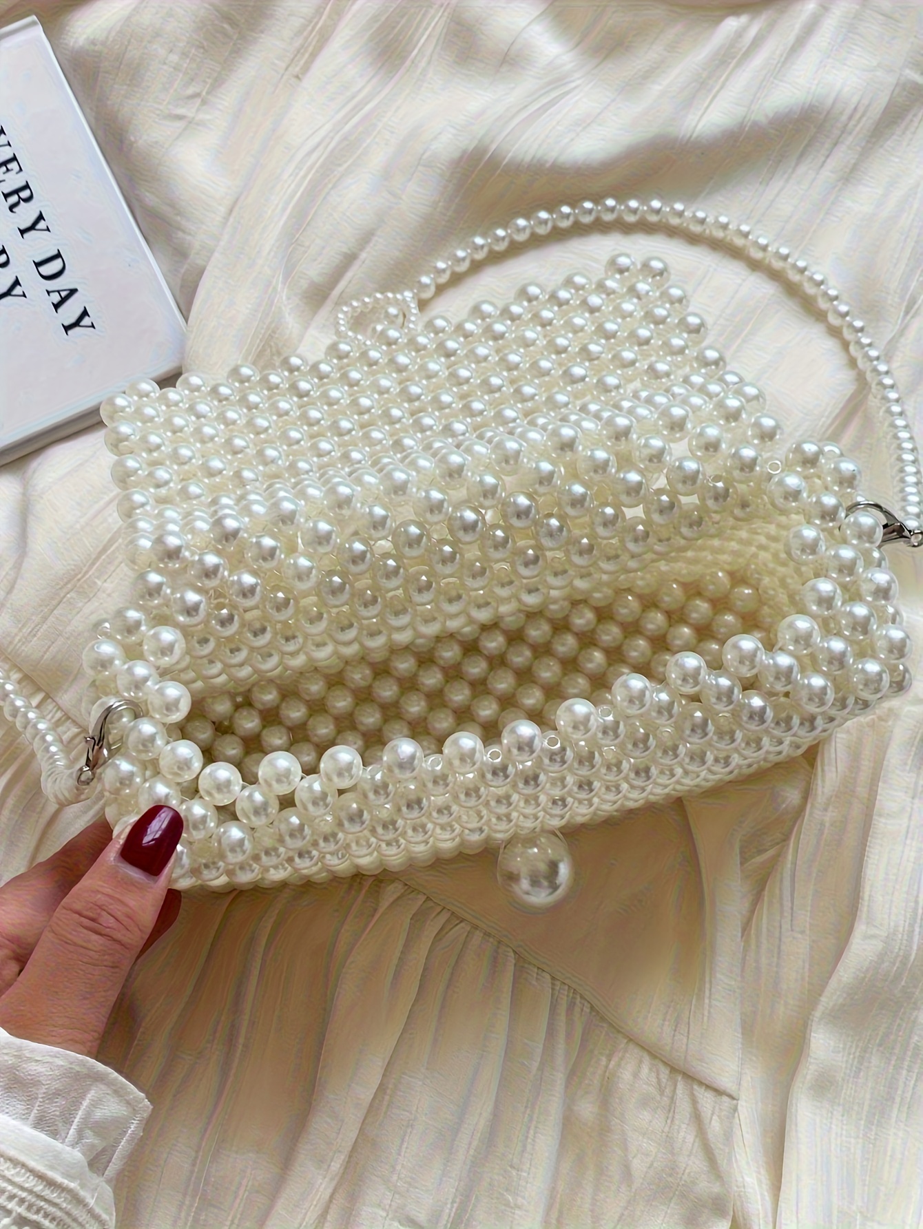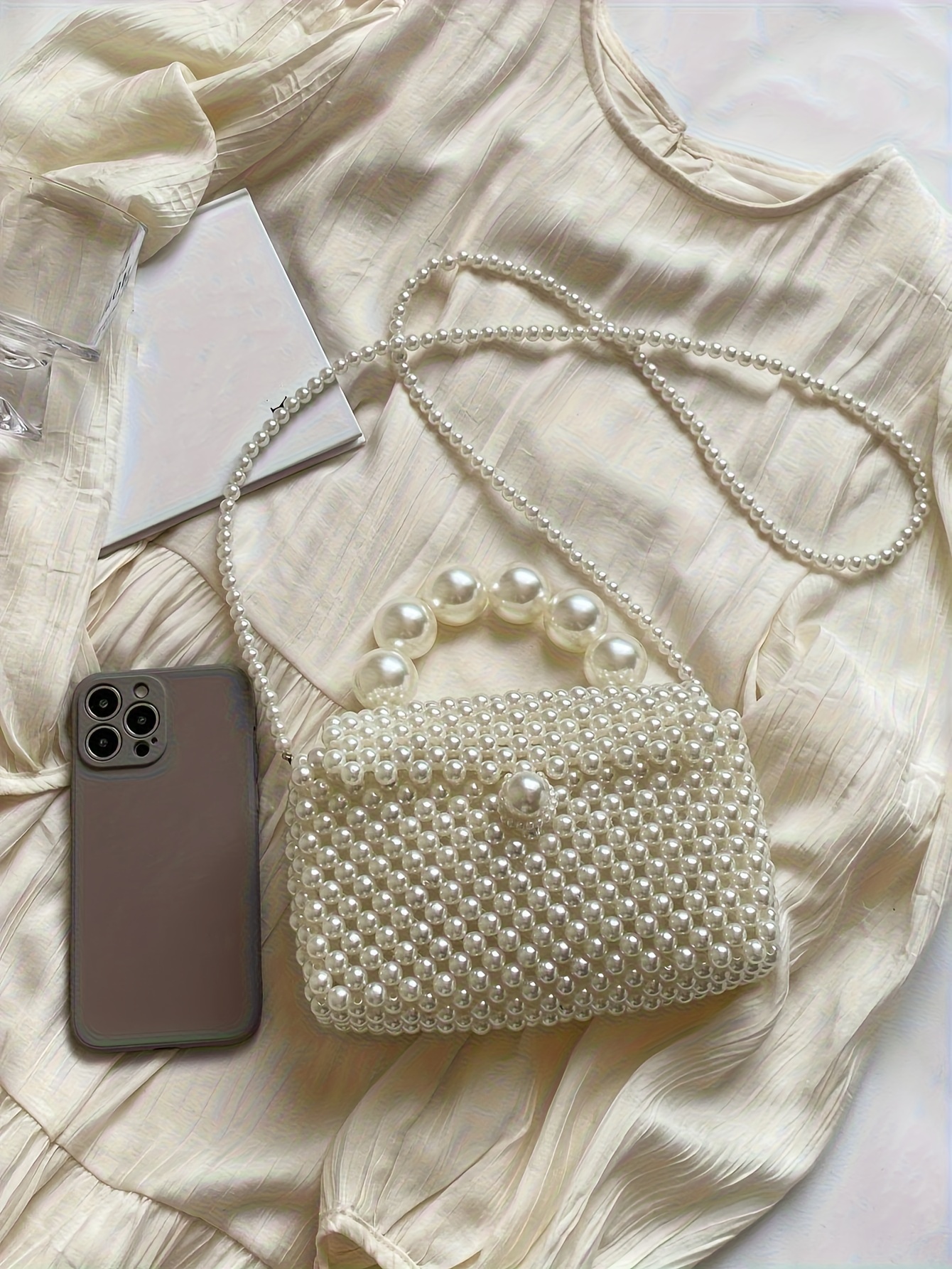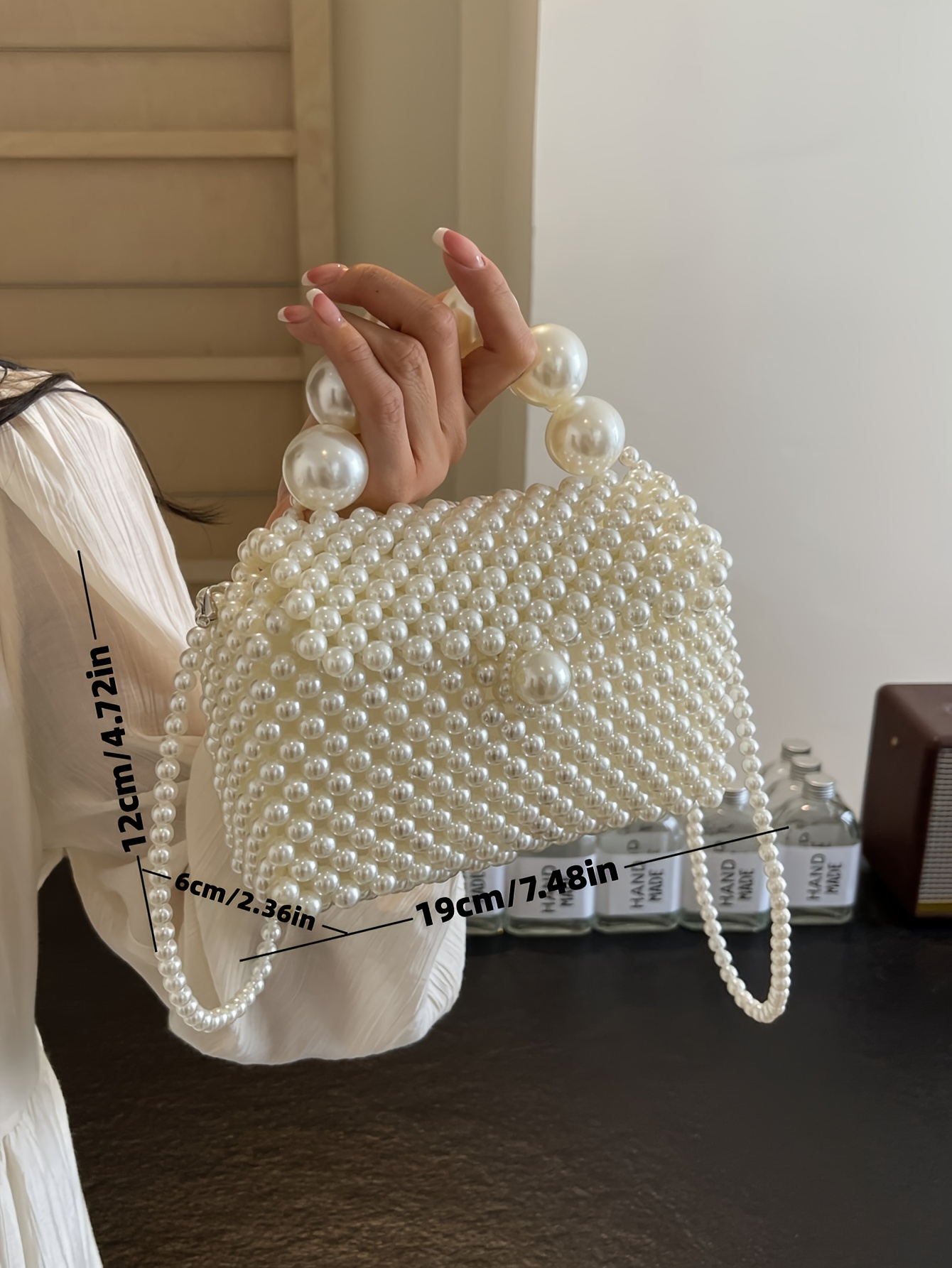 Sac à main femme chic perlé – Tissé à la main, multi-usage pour téléphone, shopping et soirées, sac fourre-tout/épaule, poignée en perles