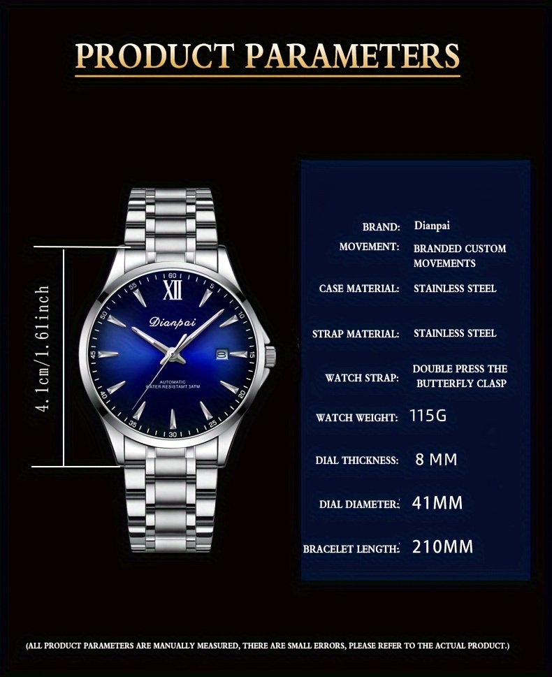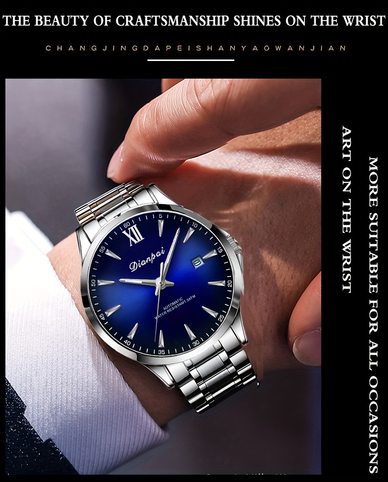 Classic Fashion Men's Fully Automatic Mechanical Watch, Calendar Display, Stainless Steel Strap, Night Light Business Men's Watch - Preferred Gift