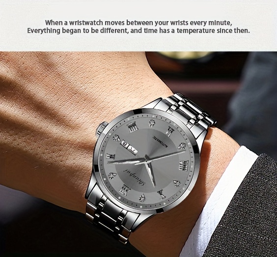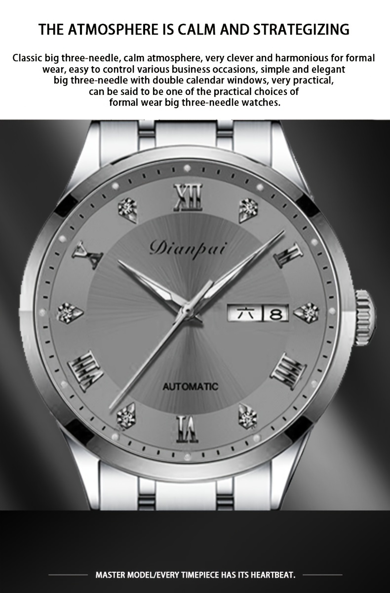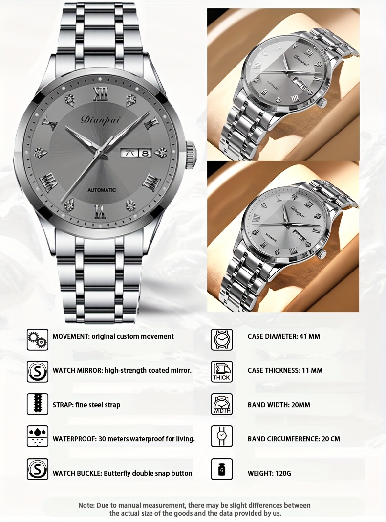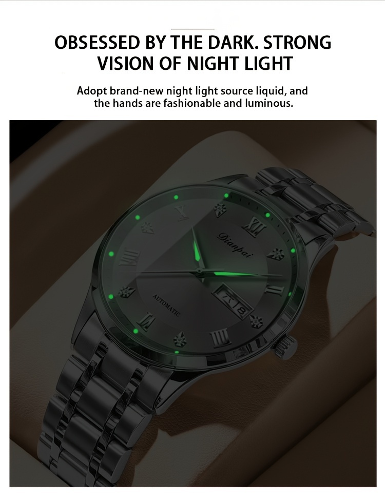Men'S Automatic Mechanical Watch with Calendar & Date Display, Luminous Hands, Roman Numerals, Stainless Steel Strap & Case, Business Style Luxury Wristwatch, Date Display Watch | Elegant Wristwatch | Durable Watch, W