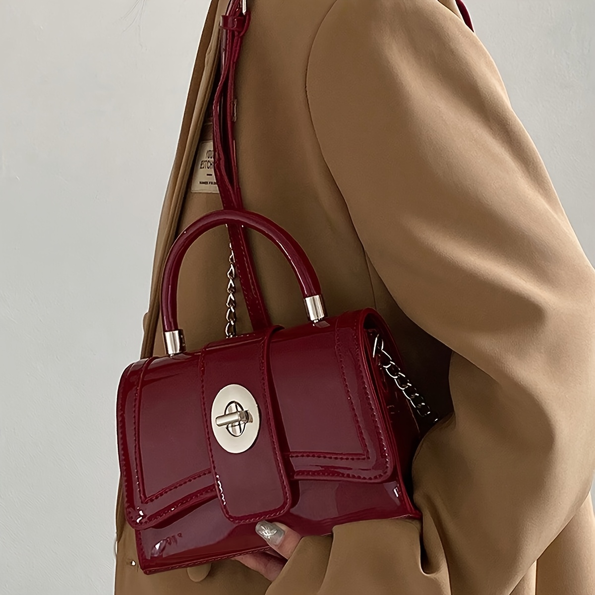 Sac à main femme élégant en similicuir bordeaux à motif crocodile, avec bandoulière ajustable, fermeture à rabat et emblème métallique
