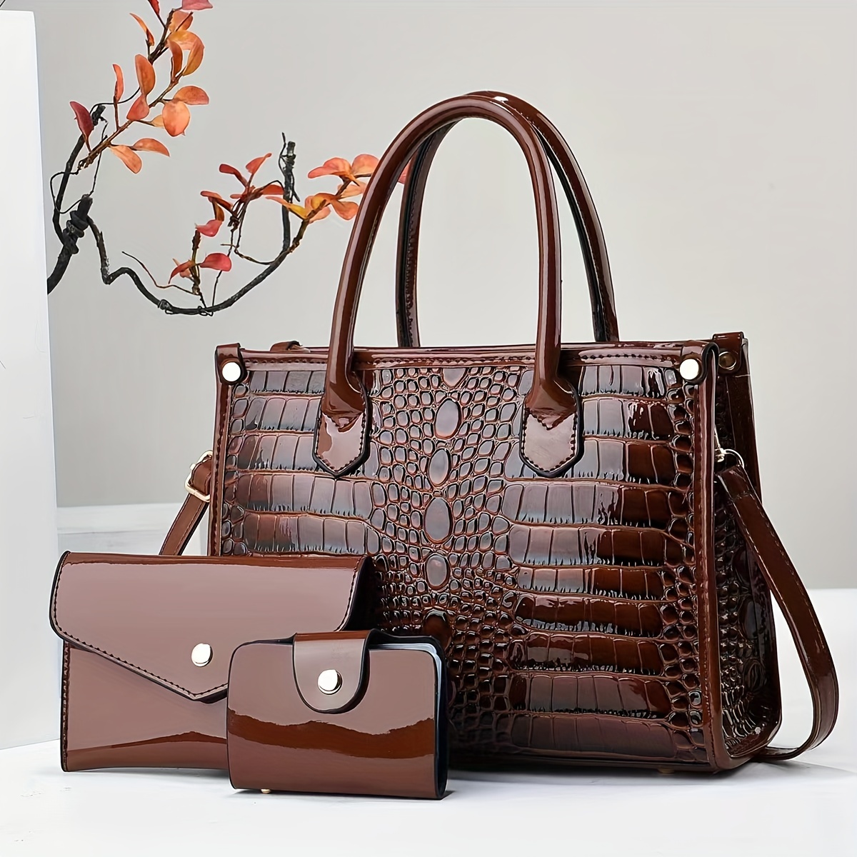 Ensemble de sacs à main en PU motif crocodile pour femmes – Sac cabas et pochette de luxe, grand sac à bandoulière, style vintage pour le bureau