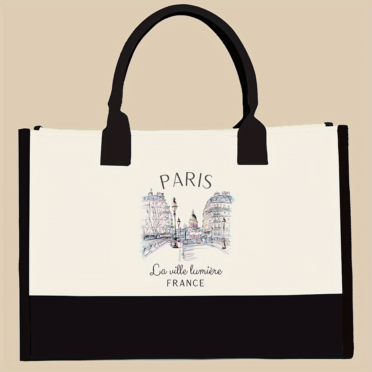 Sac Cabas Élégant Paysage Urbain Parisien – Toile, Poignées, Sans Fermeture, Style Décontracté, Non Doublé, Sac Cabas Quotidien | Sac Cabas Élégant | Poignées Durables, Sac Cabas