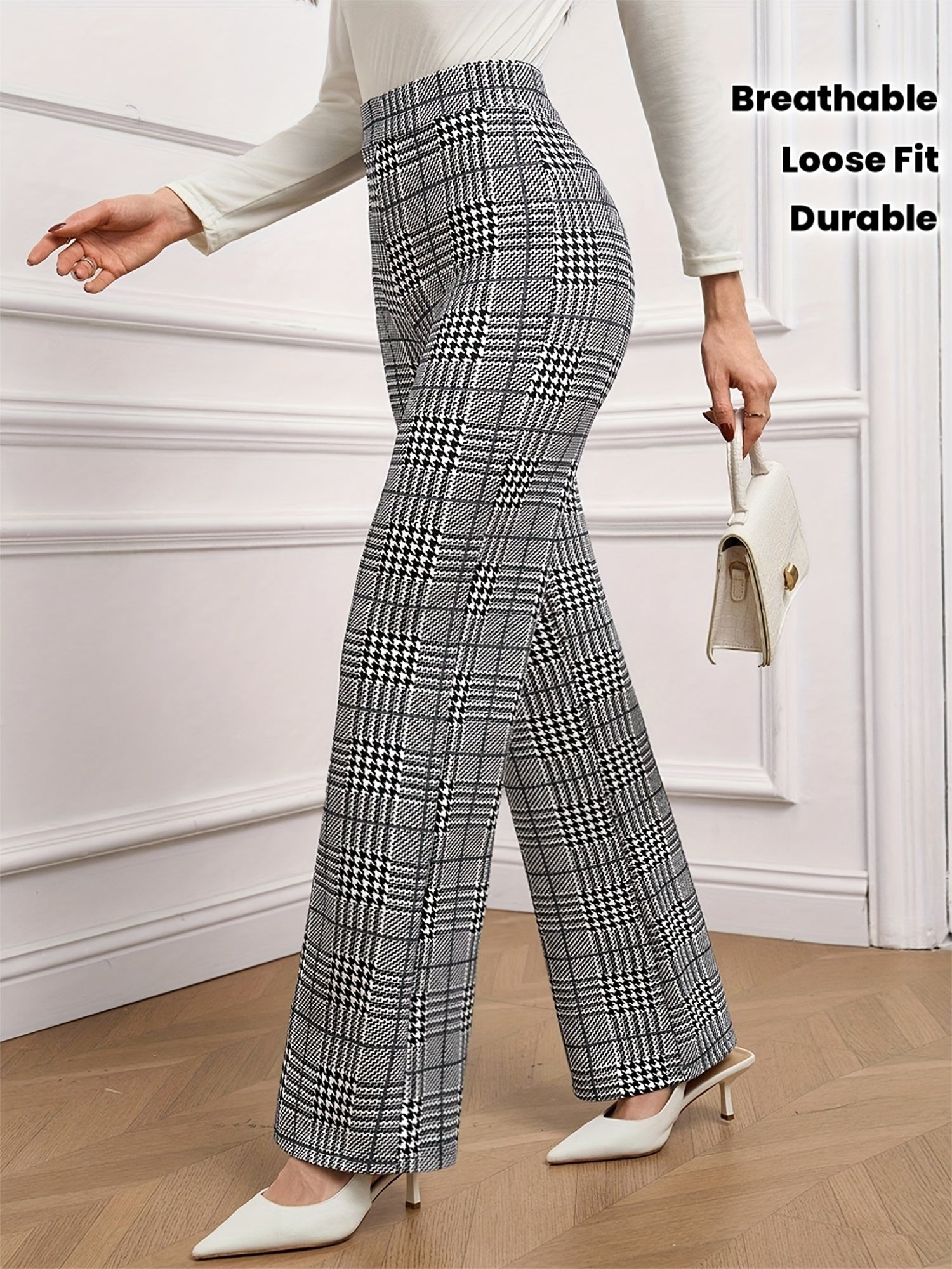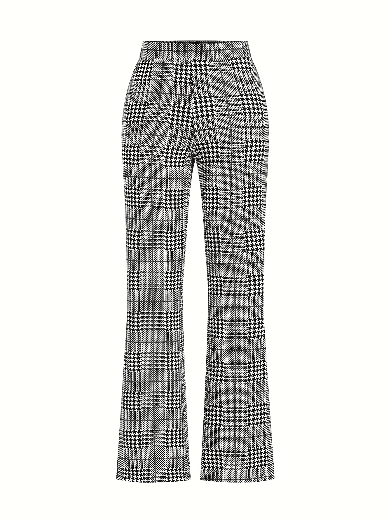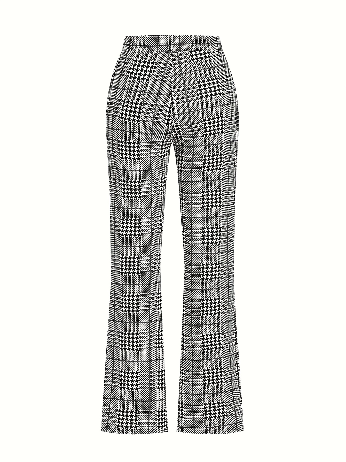Pantalon Femme Élégant Extensible – Jambe Droite, Motif Carreaux Classique, Confortable et Polyvalent