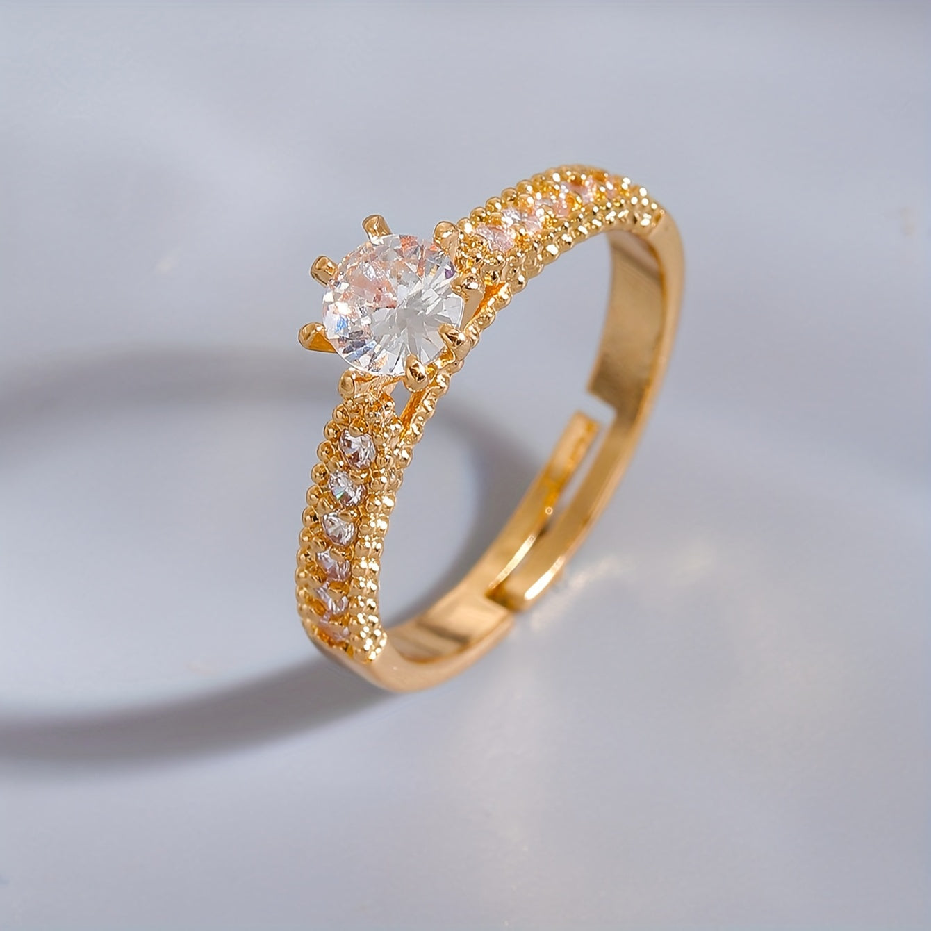 Elegant Vintage-Inspired Copper Ring with Sparkling Cubic Zirconia - Adjustable Open Design for Everyday & Party Wear