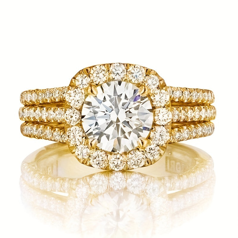 Elegant Wedding Jewelry for Brides Featuring a Round Zirconia Ring with a 4 Prong Setting, Perfect for Romantic Engagements And Stylish Gifts.