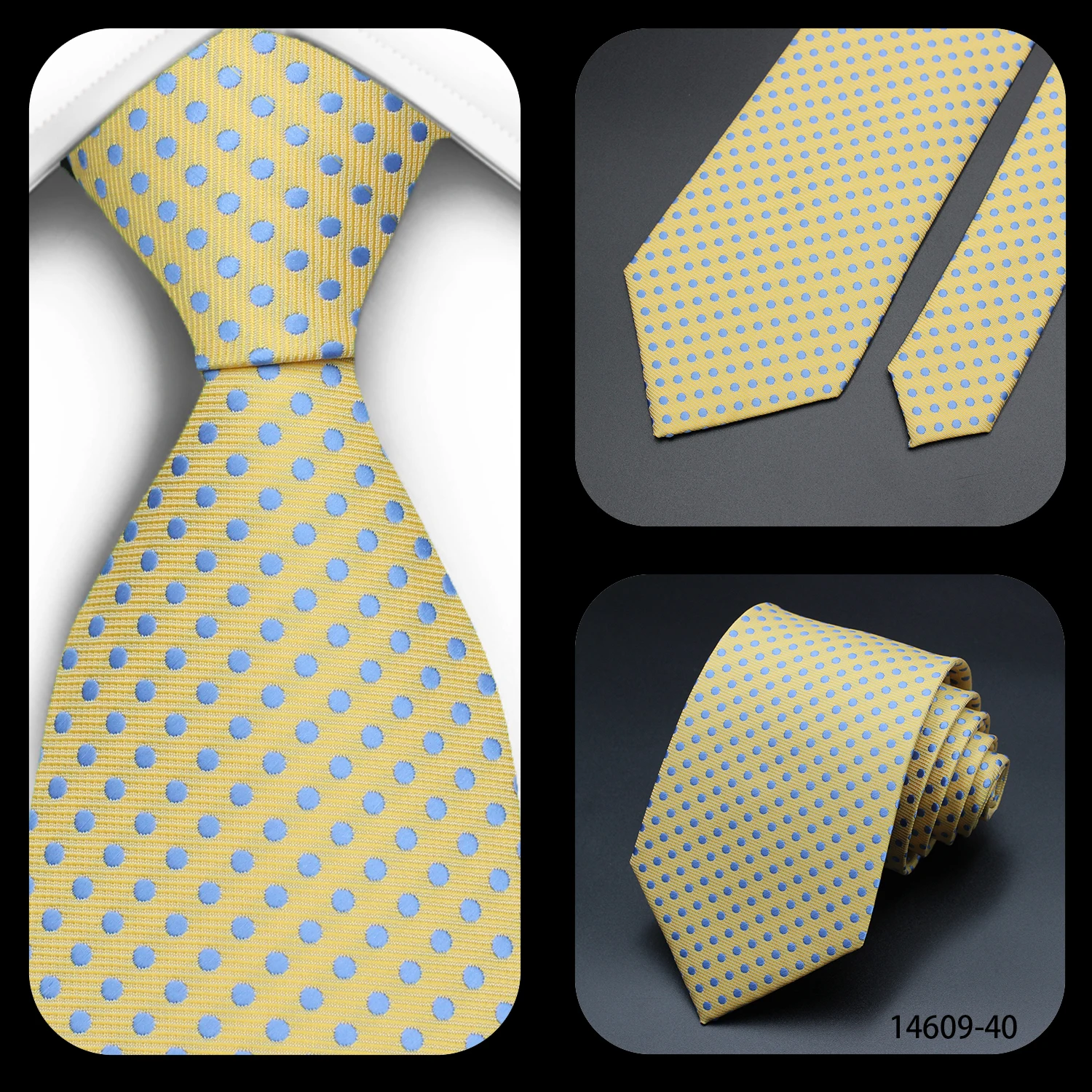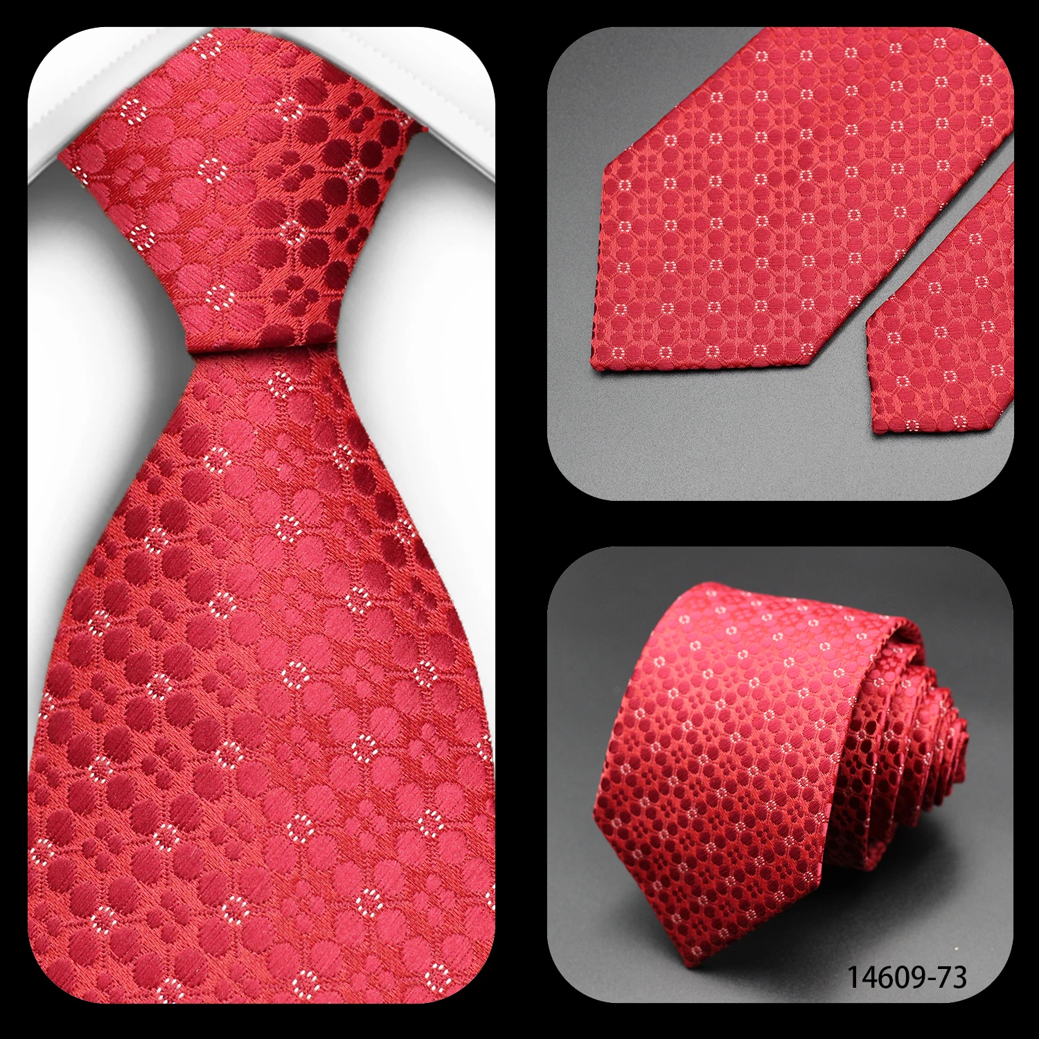 Cravate Homme Fantaisie – Motifs Floraux et Pois en Bleu, Rouge et Jaune, pour Affaires, Mariage et Cadeau Formelle