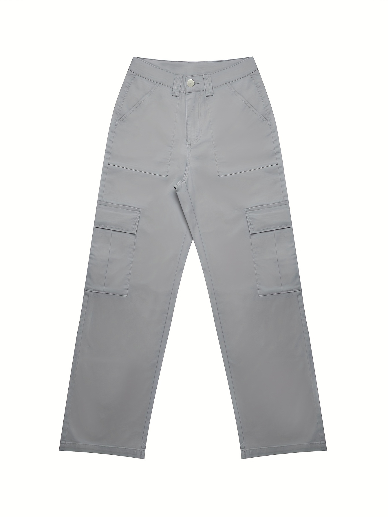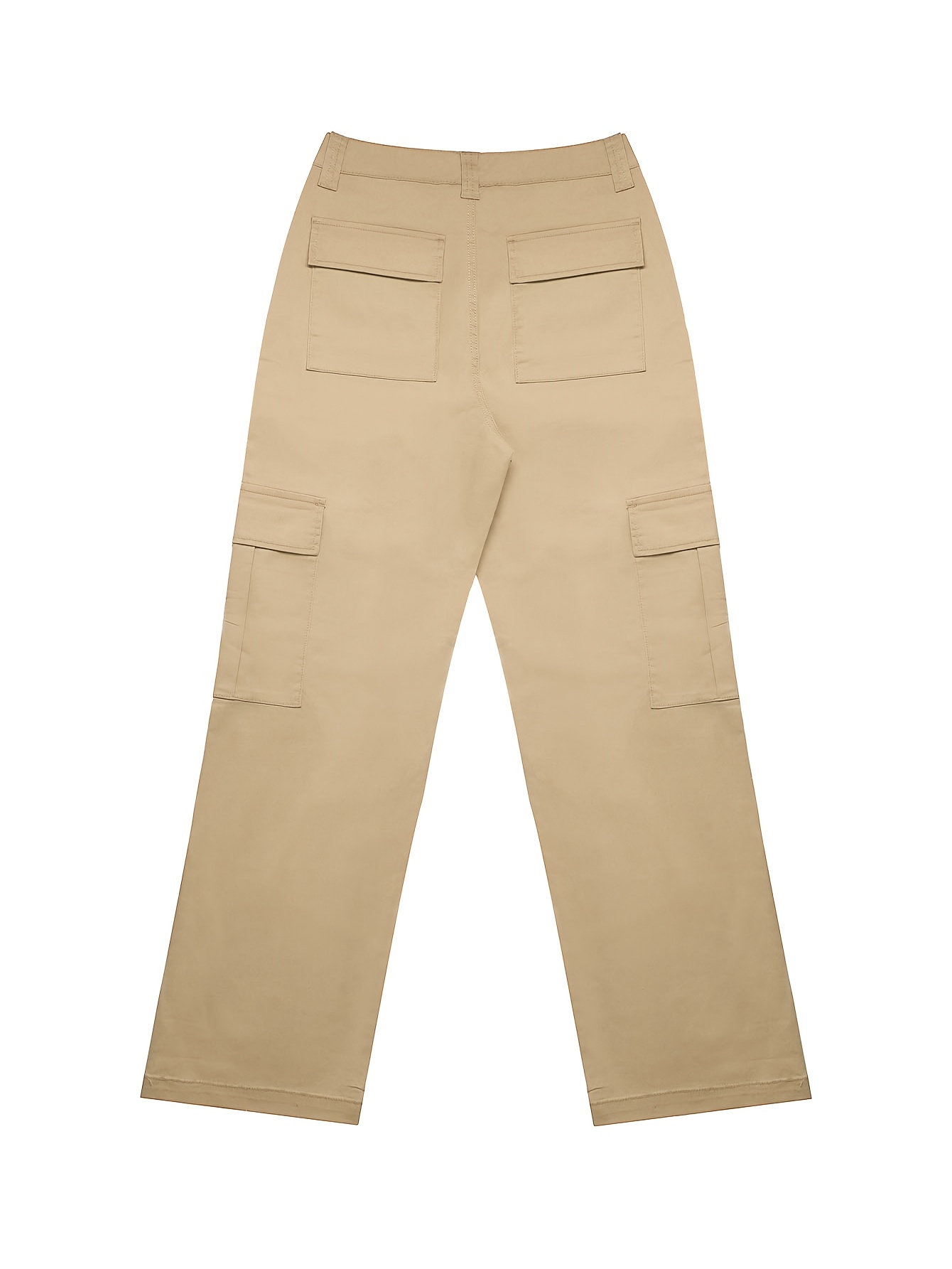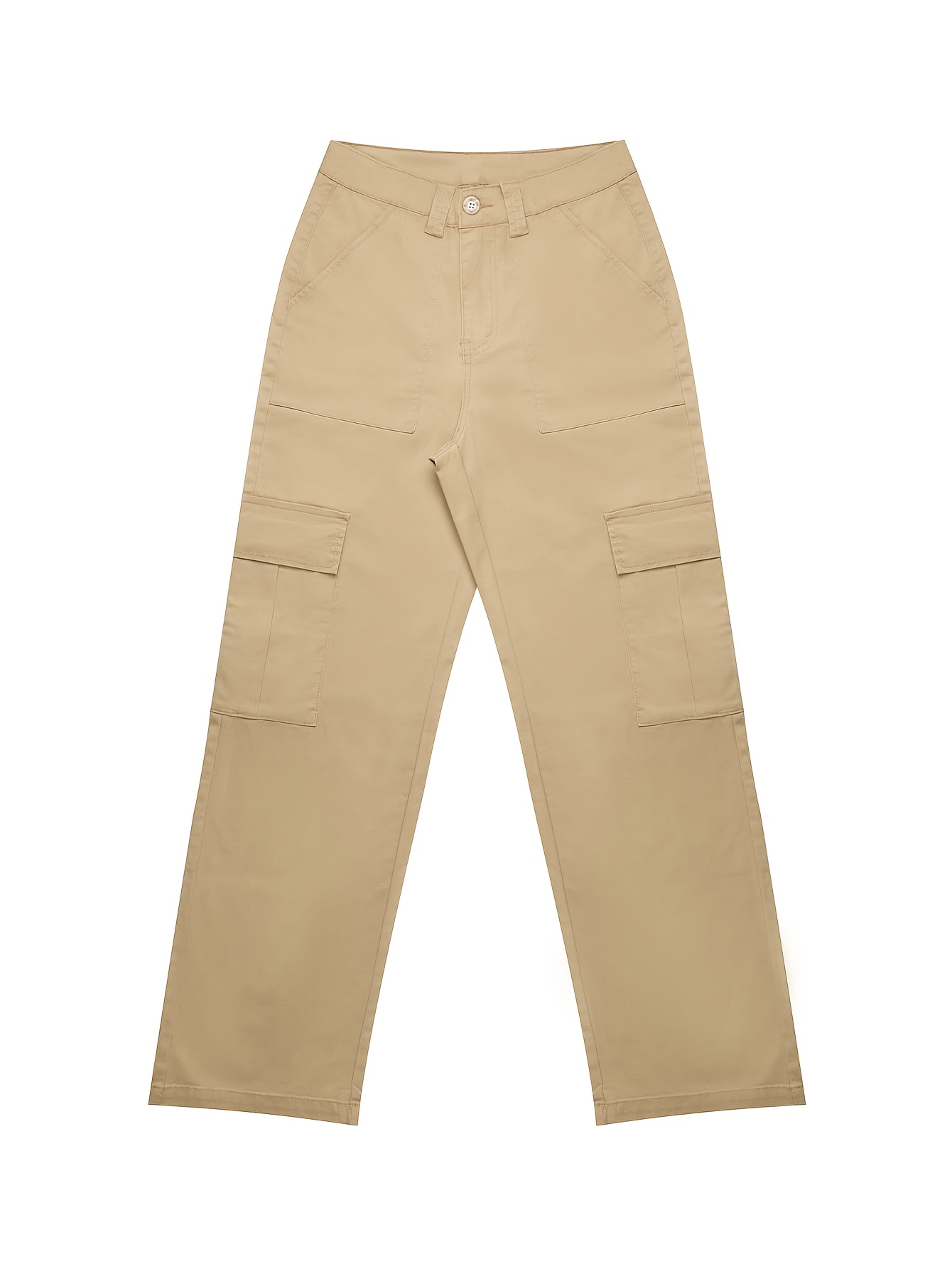 Jeans Cargo Femme – Taille Haute, Beige, Poches Multiples, Jambe Droite, Style Streetwear Hip-Hop