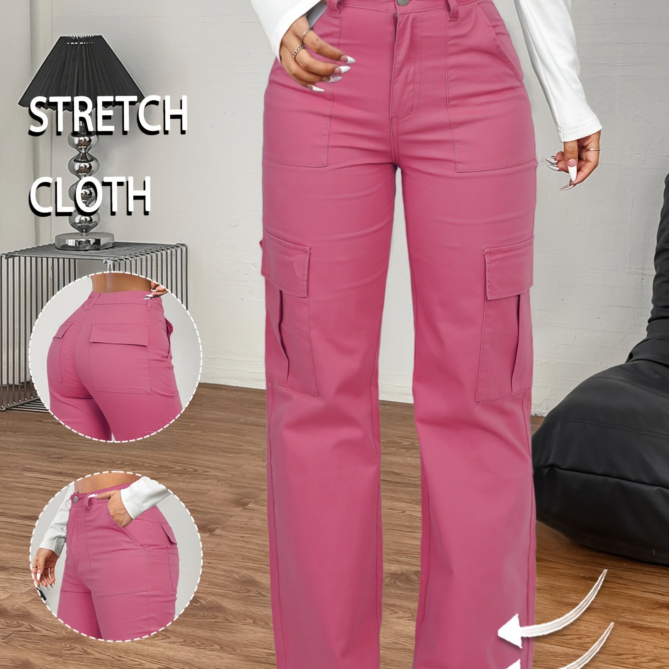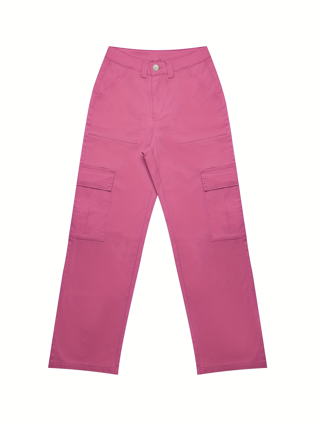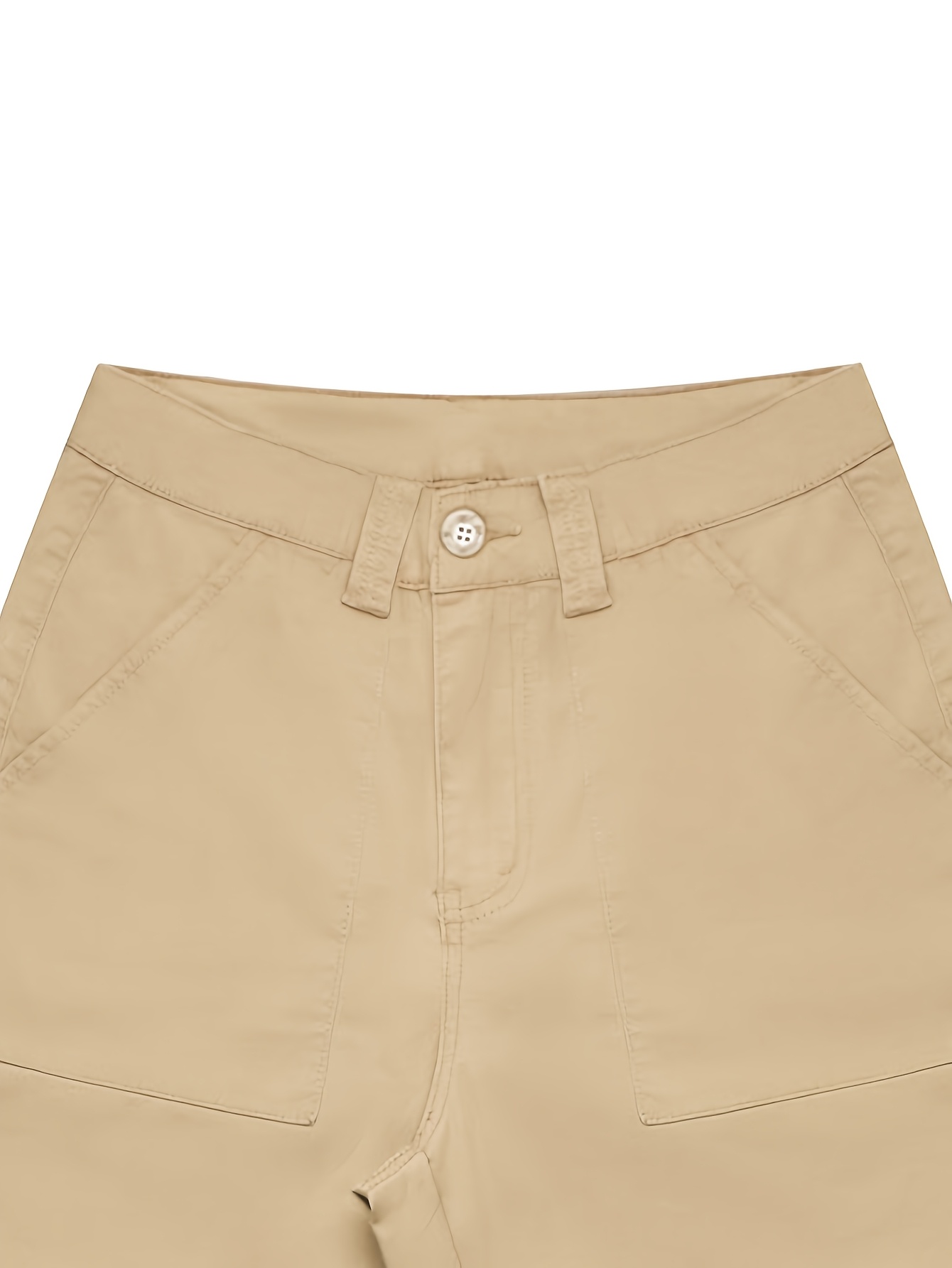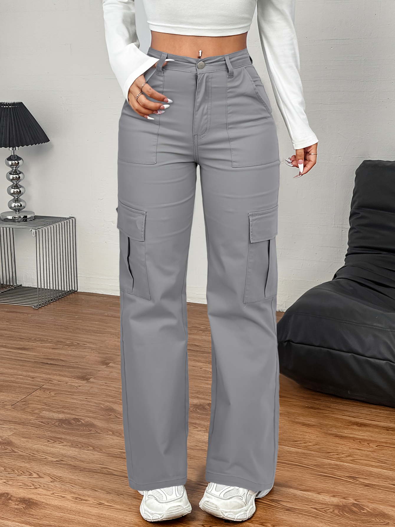 Jeans Cargo Femme – Taille Haute, Beige, Poches Multiples, Jambe Droite, Style Streetwear Hip-Hop