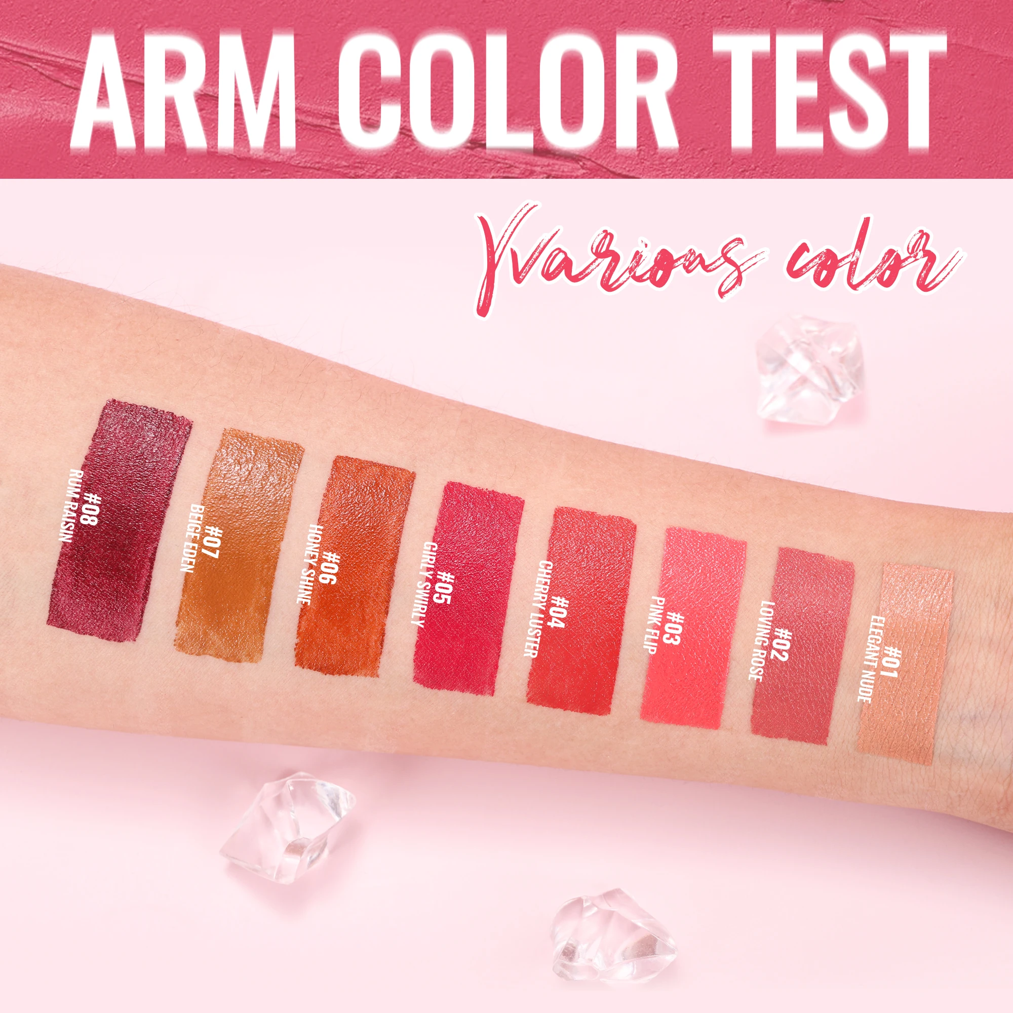 Rouge à Lèvres Velours Mat 8 Couleurs – Longue Tenue, Couleur Intense, Anti-Chute, Hydratant, Fini Naturel