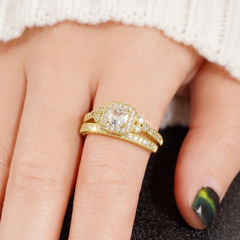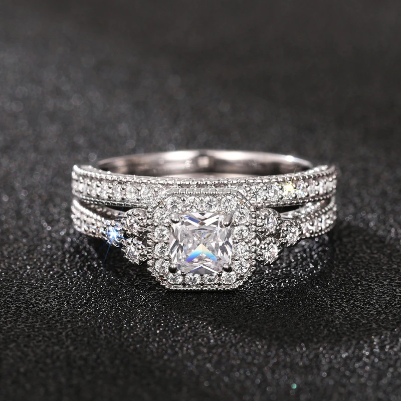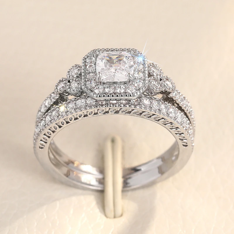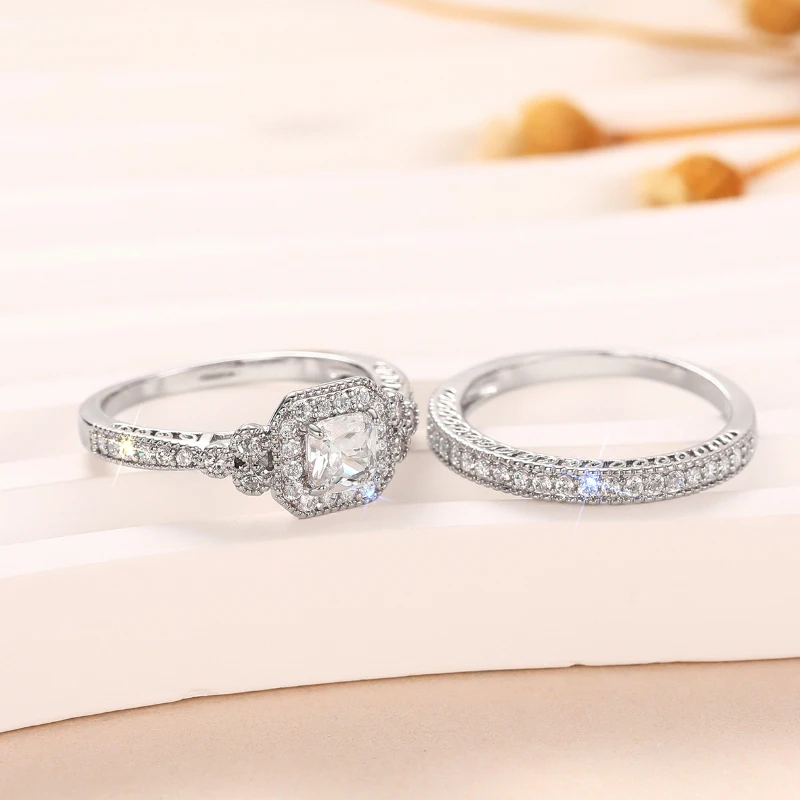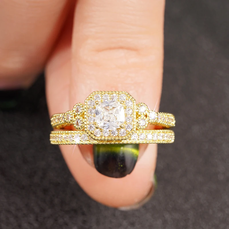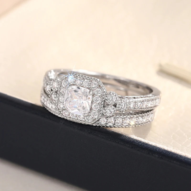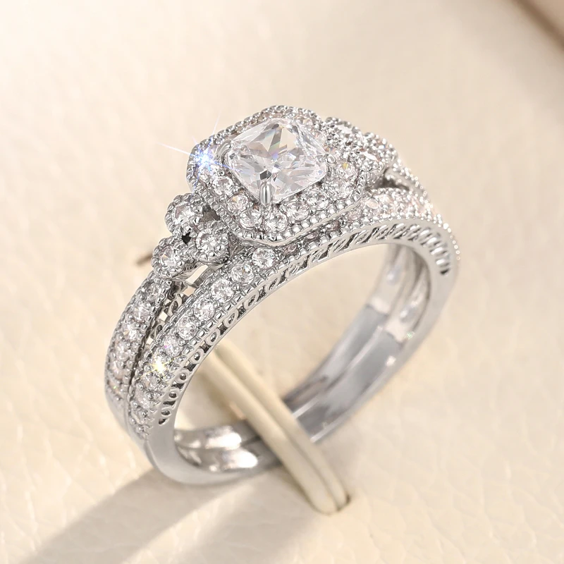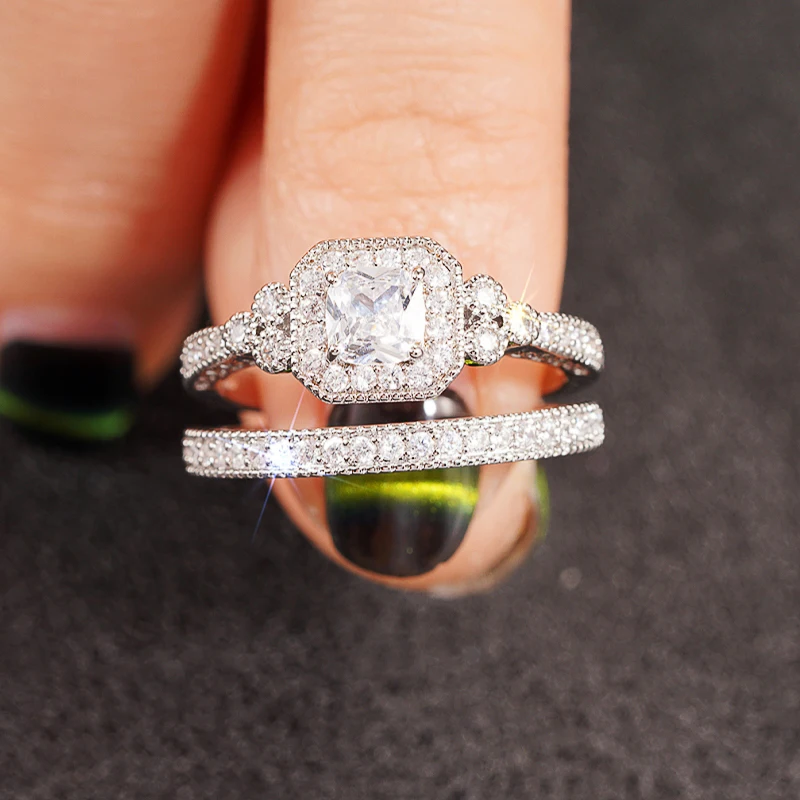 Huitan mode 2 pièces ensemble de bagues pour femmes Double couche empilable bijoux de mode à la mode cubique zircone pierre doigt accessoires