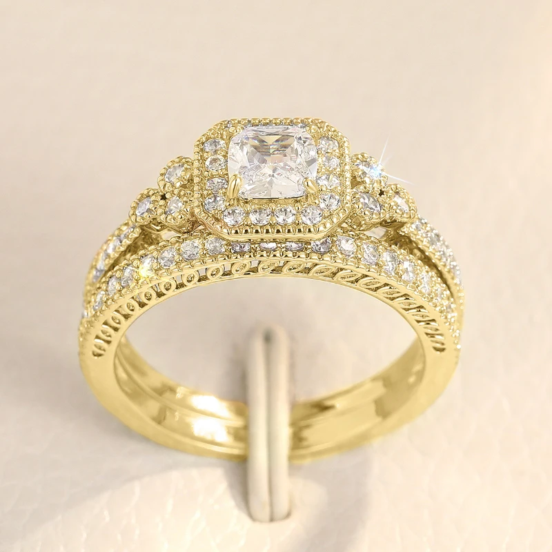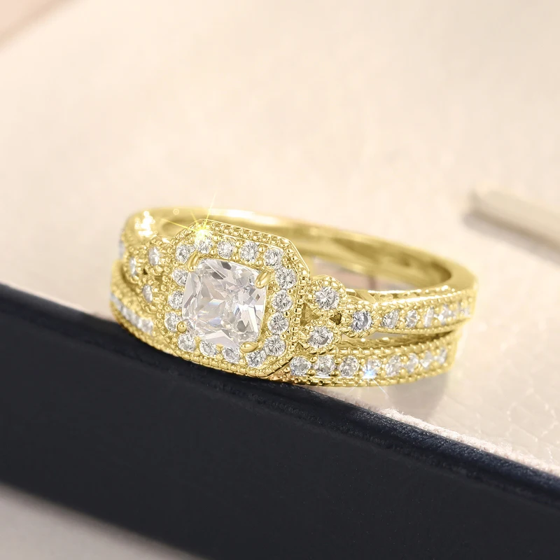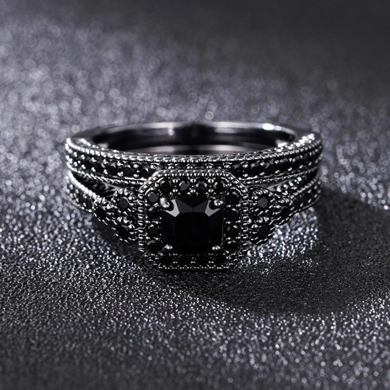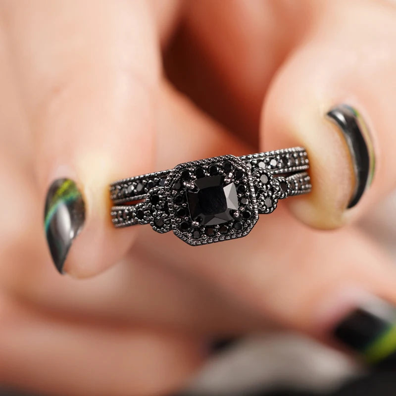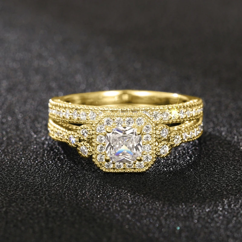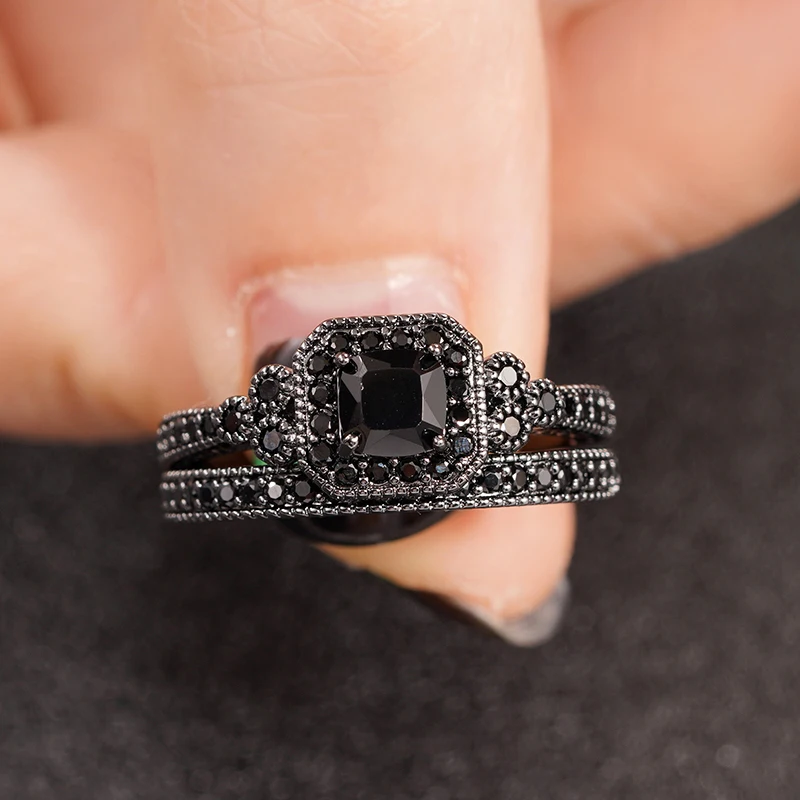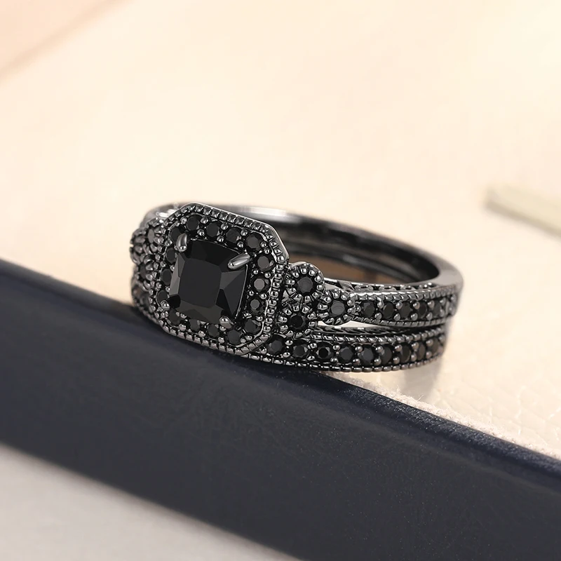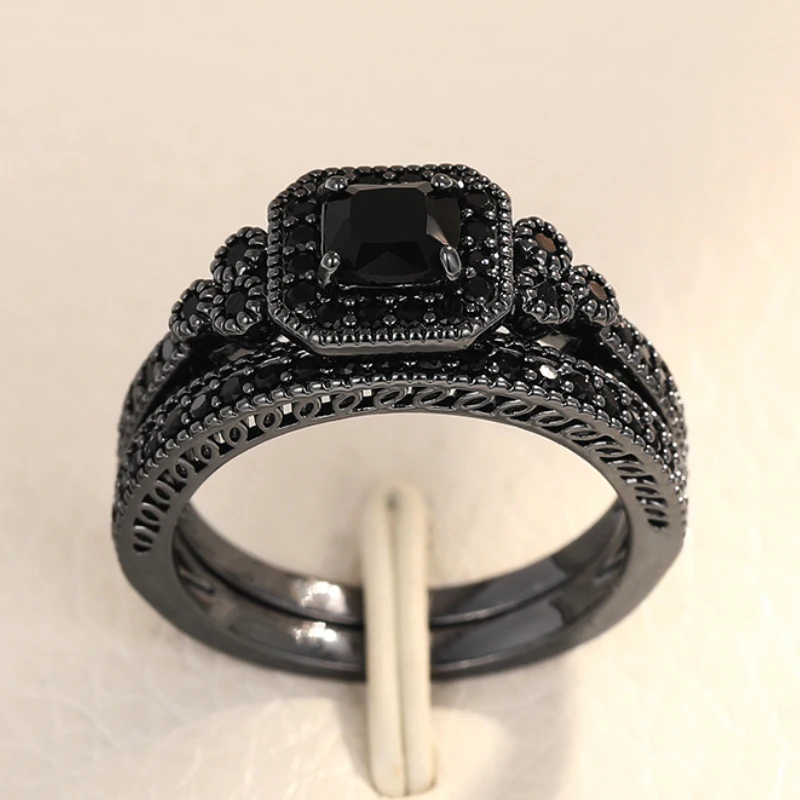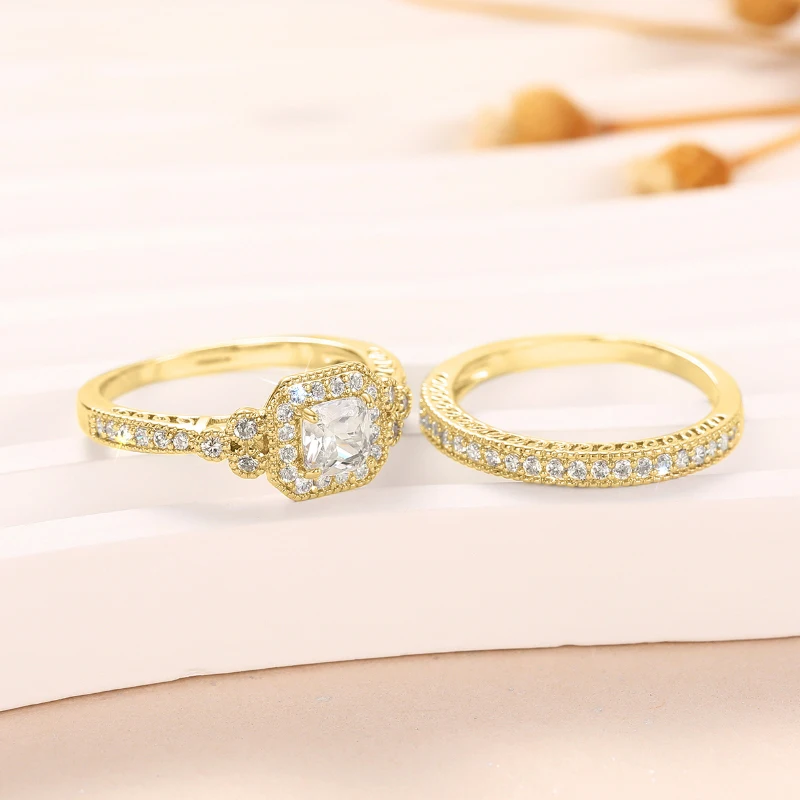 Huitan mode 2 pièces ensemble de bagues pour femmes Double couche empilable bijoux de mode à la mode cubique zircone pierre doigt accessoires