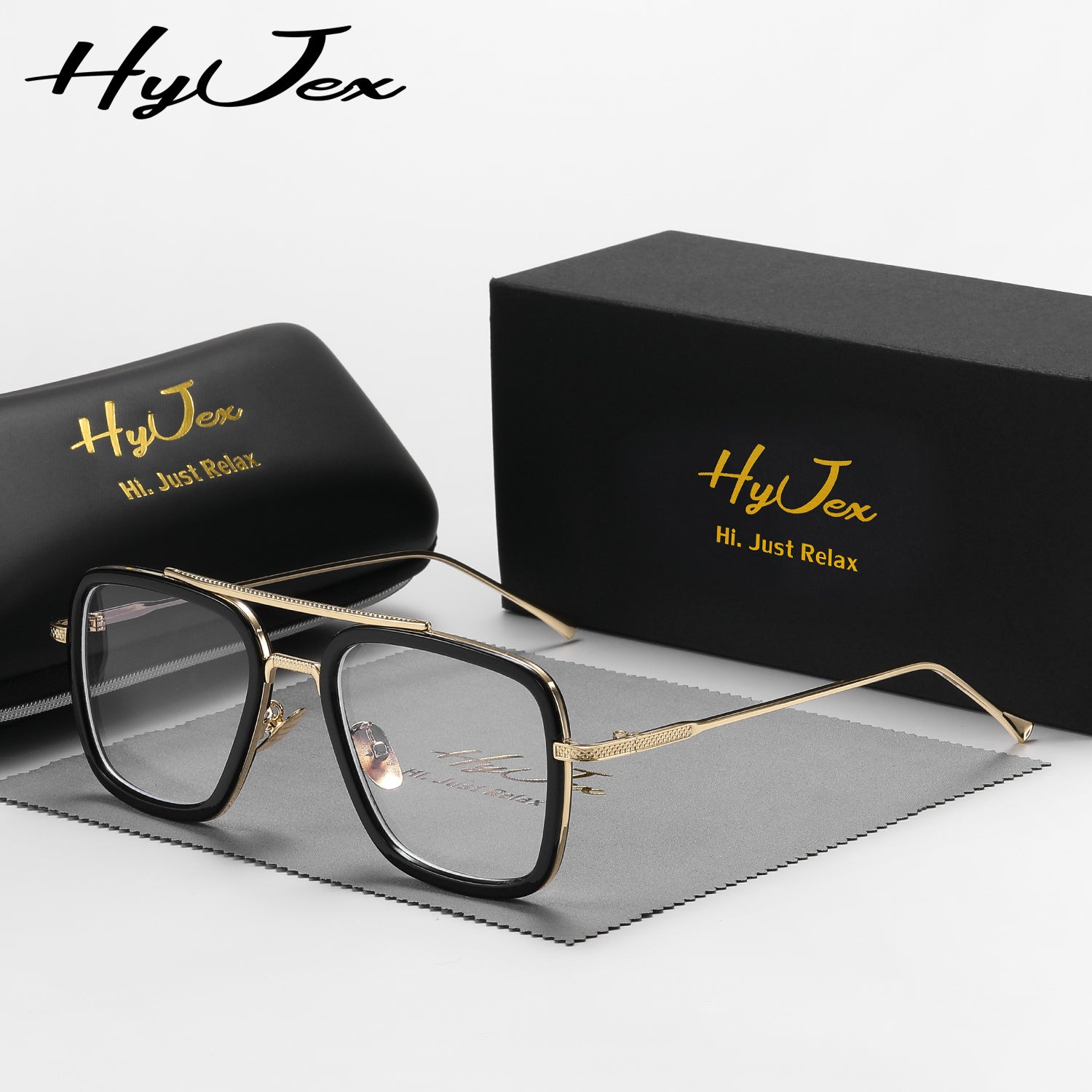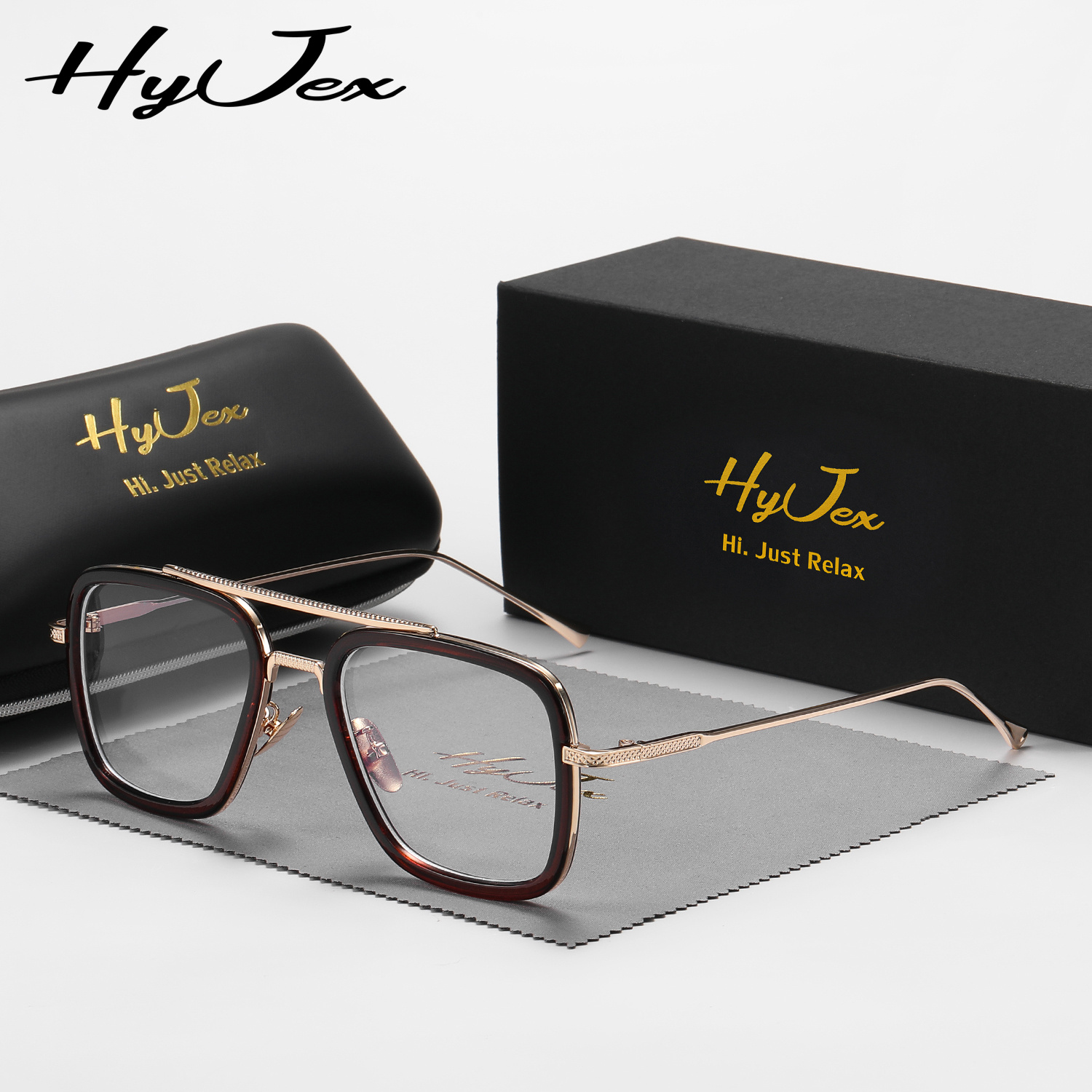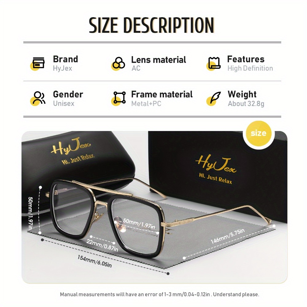 HyJex Trendy Square Frame Blocking Glasses with Golden-Tone Metal Arms, Black Rectangular Eyewear for Women, Includes Protective Case, | Stylish Eyewear | Metal Frame Glasses for Daily