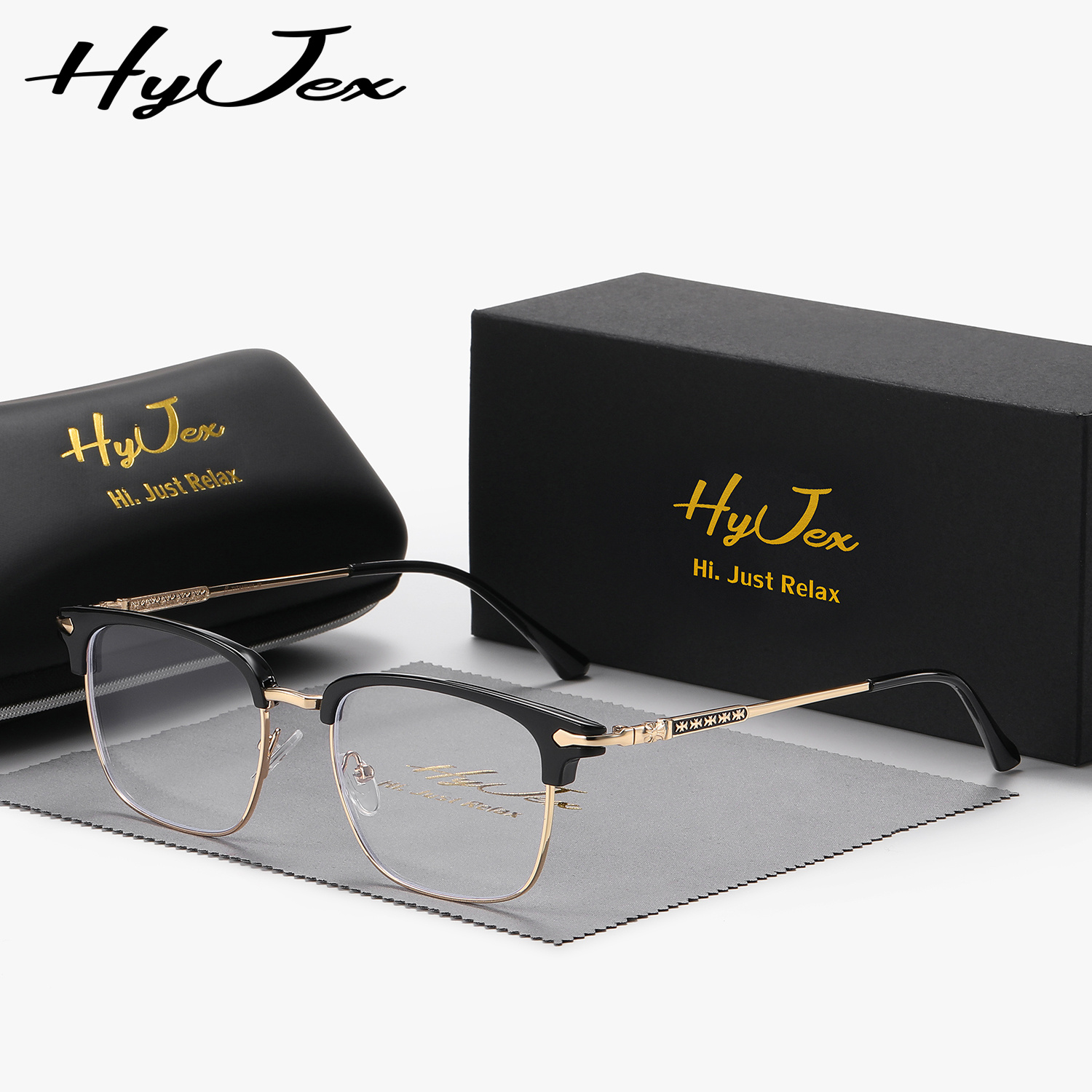 HyJex Unisex Semi-Rimless Fashion Eyebrow Style Business Glasses for Tech Men, Large Frame Cool Plain Lens Glasses